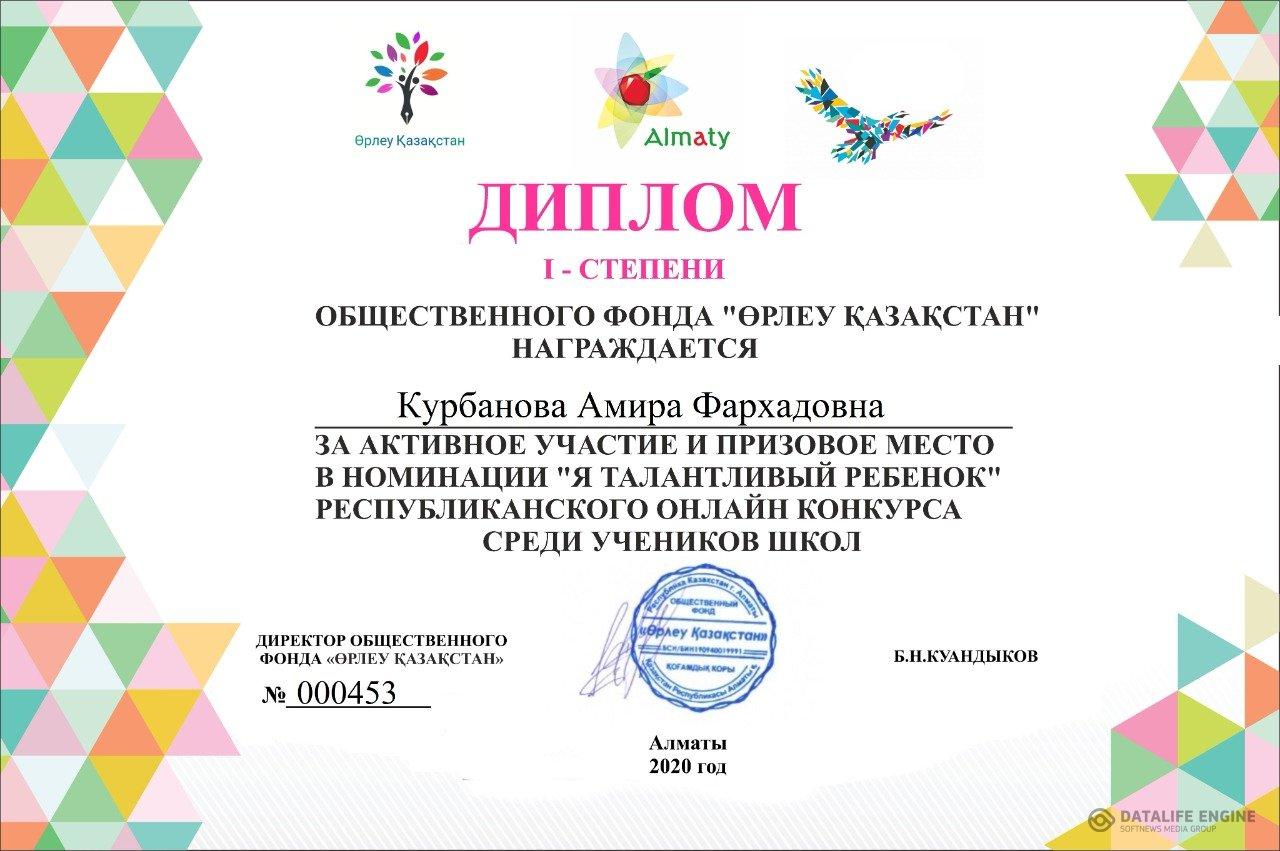 Мен талантты баламын!! атты сайыстан Курбанова Амира марапатталды.