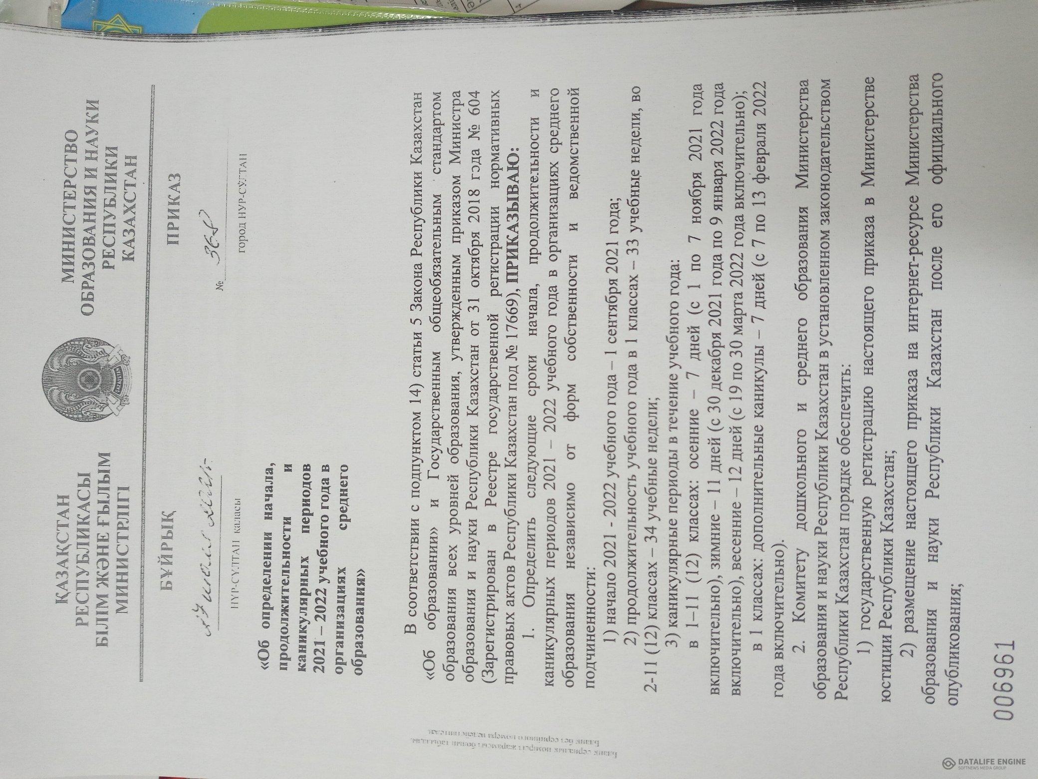 2021-2022 оқу жылының басталуы туралы бұйрық.