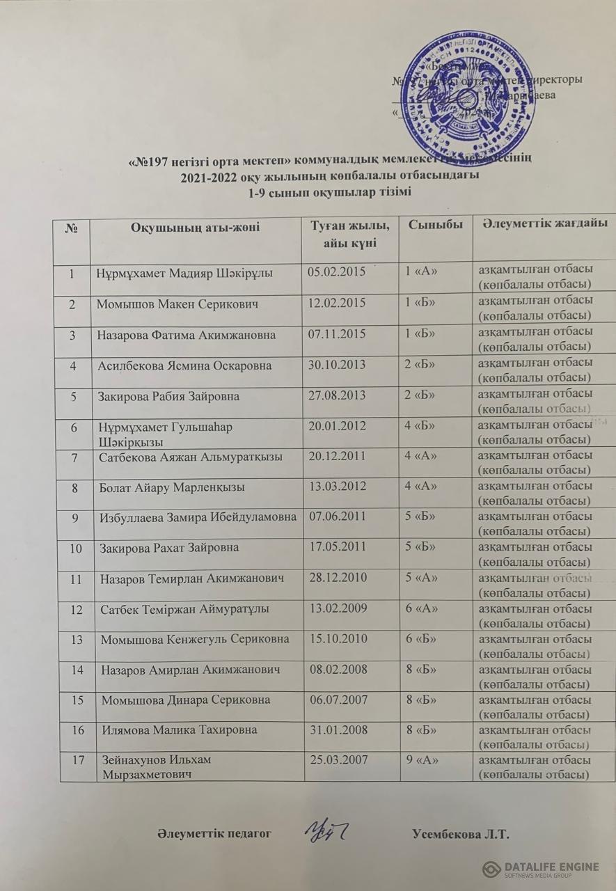 » Аз қамтылған отбасының оқушыларының тізімі.