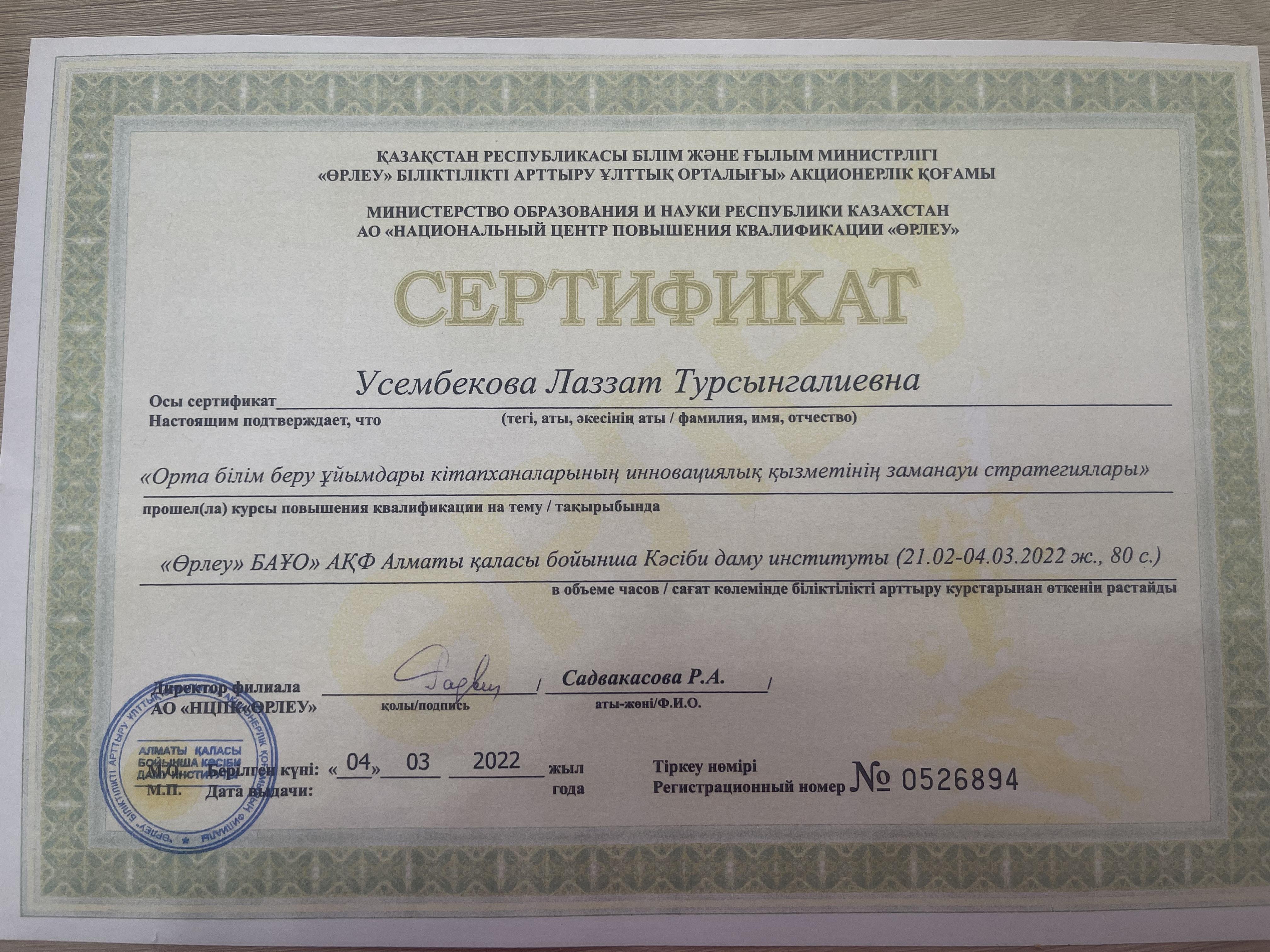 Сертификат.№0526894
