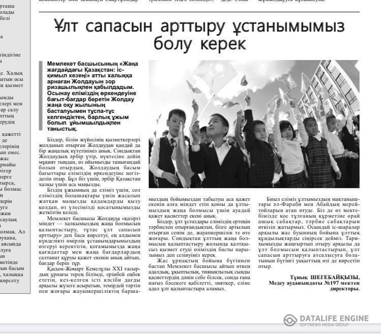 Ұлт сапасын арттыру ұстанымымыз болу керек.