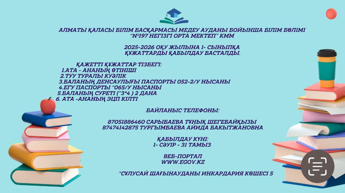 1-СЫНЫПҚА ҚҰЖАТ ҚАБЫЛДАУ 1 СӘУІРДЕН БАСТАЛАДЫ