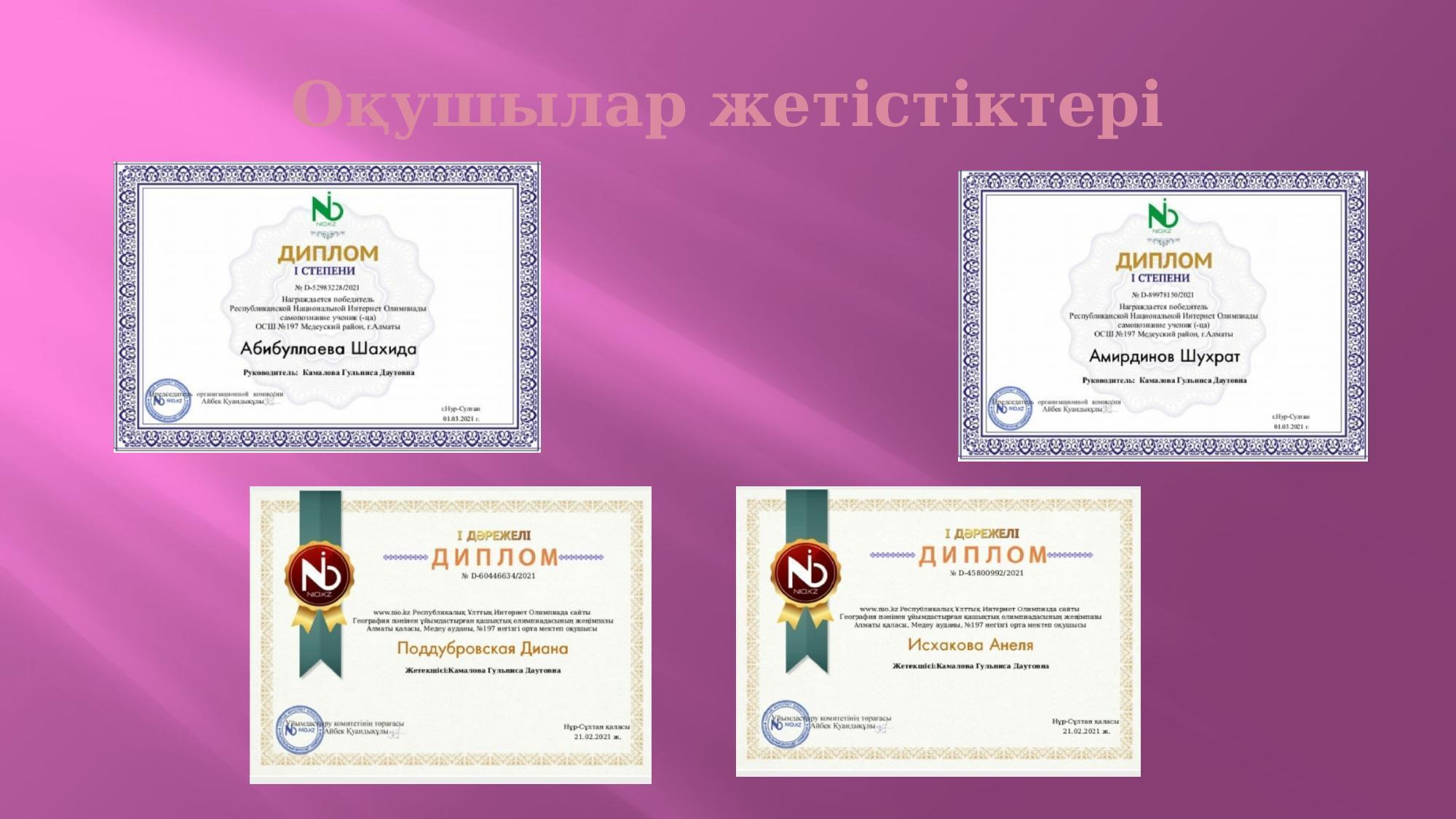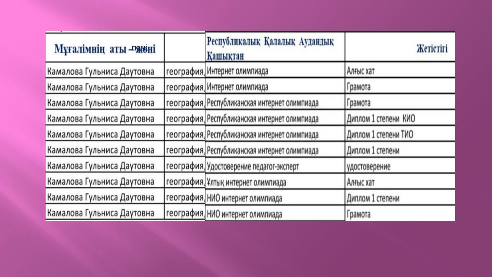 География Пәнінің мұғалімі Камалова Г.Д. жетістері мен мадақтамалары