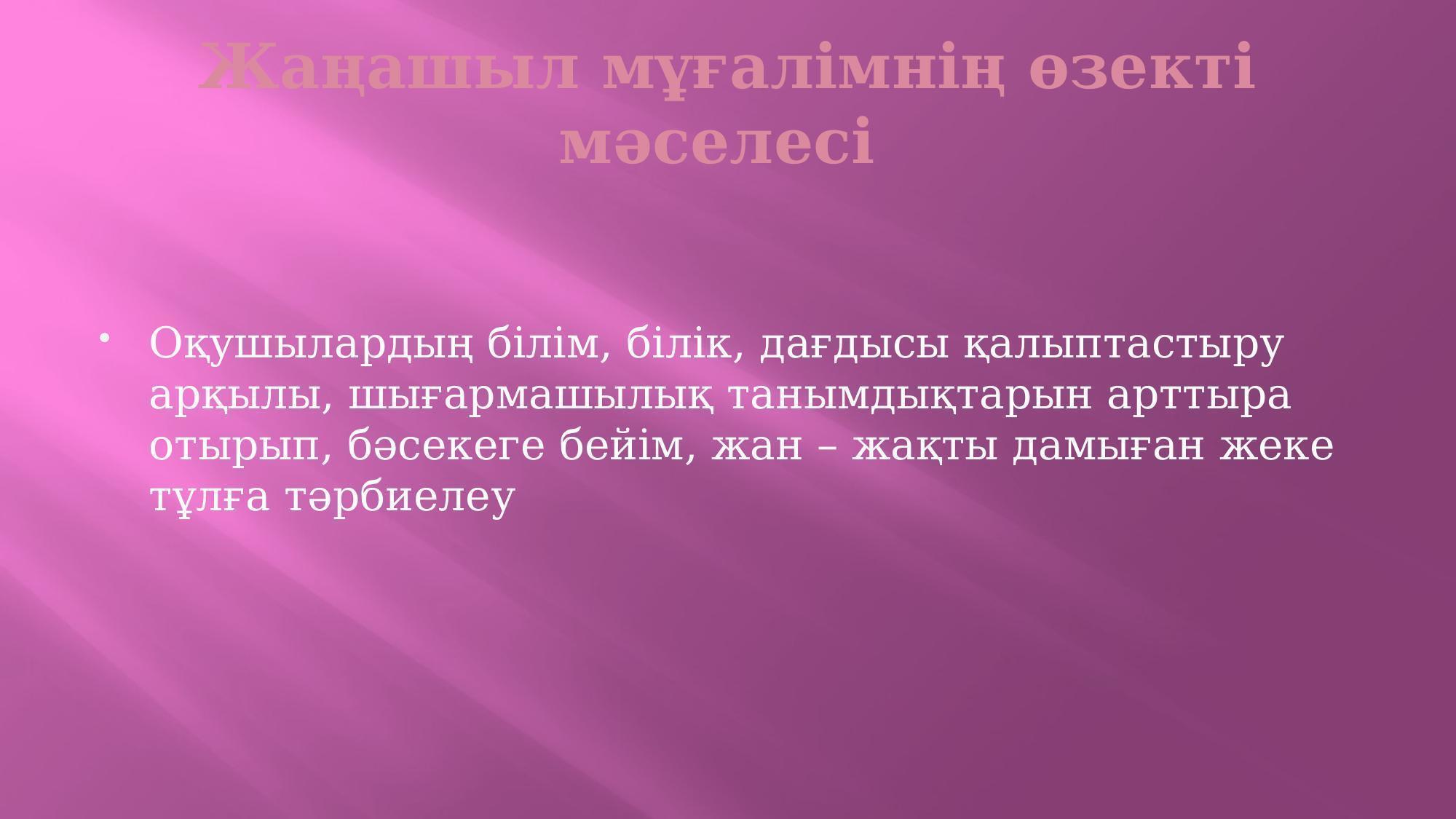 Жер Ана- ортақ үйіміз, табиғат- тылсым жұмбағы. Мақсаты: 1. Химия, биология және география пәндеріне қызығушылықтарын арттыру.