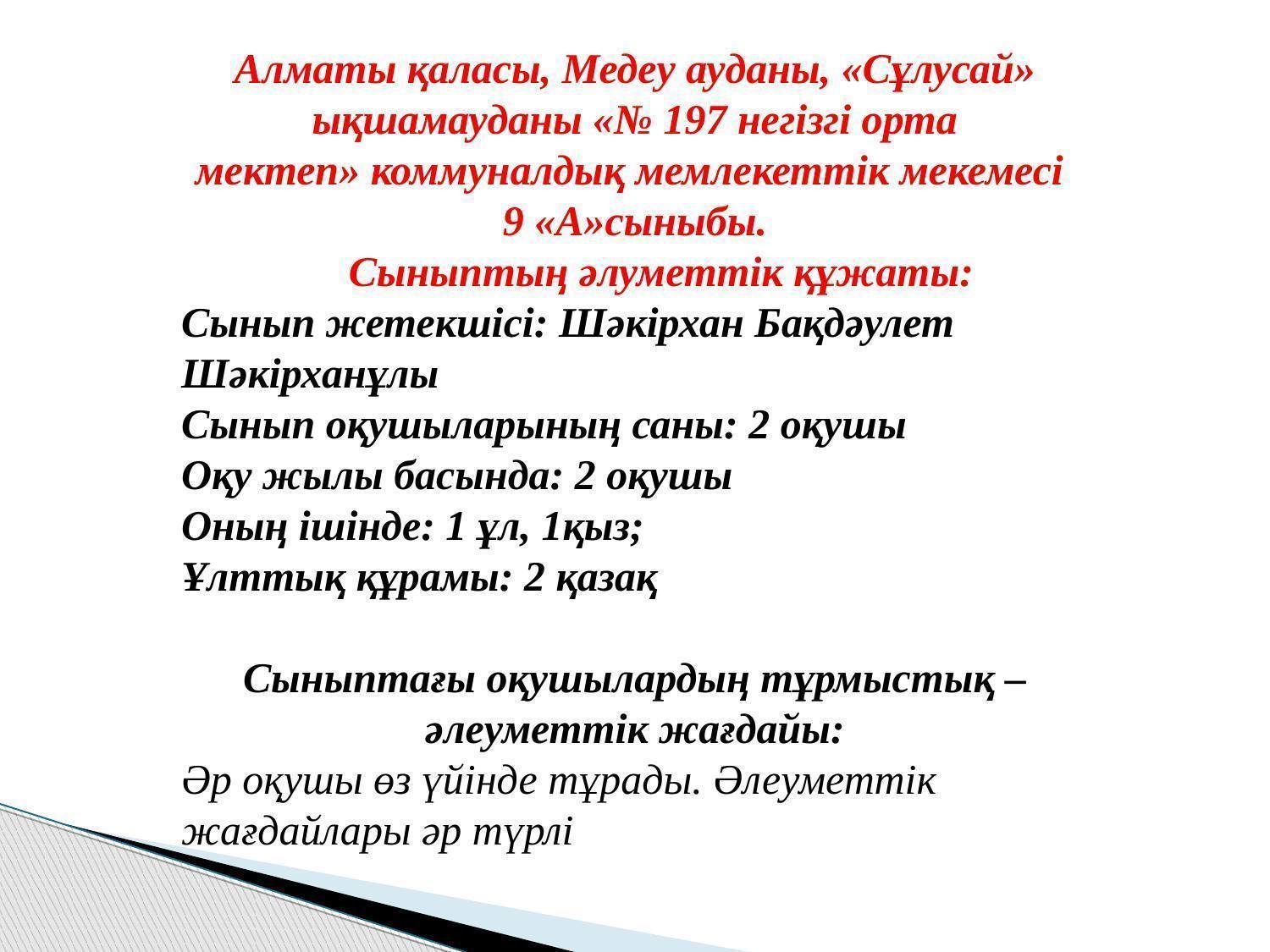 Основная средняя школа №197. Медеуский район