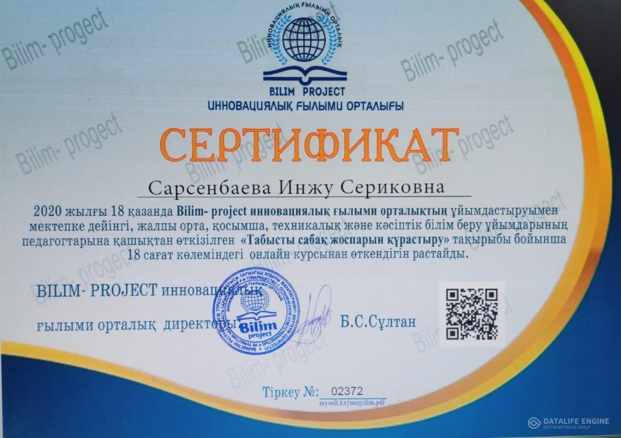 » Сәрсенбаева И.С. Табысты сабақ жоспарын құрастыру. онлайн курстан өтті.