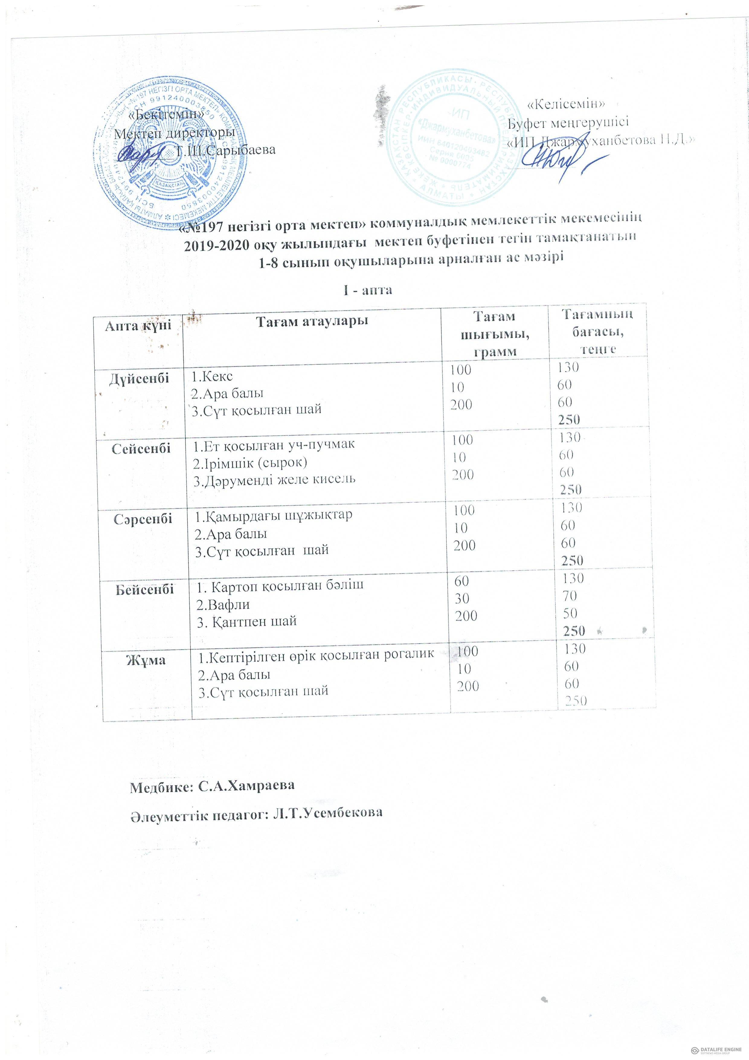 24 февраль 2020 0 1 2 3 4 5 №197 НОМ 2019-2020 оқу жылындағы мектеп буфетінен тегін тамақтанатын 1-8 сынып оқушыларына арналған ас мәзірі
