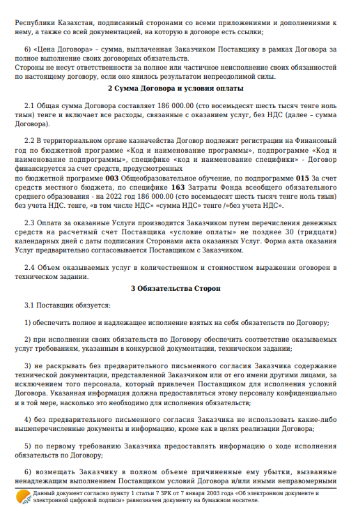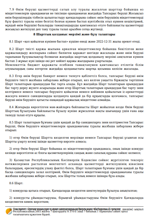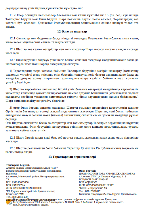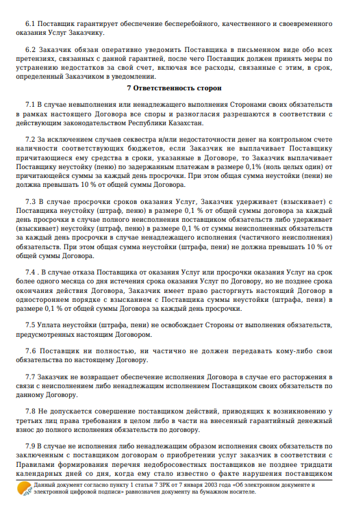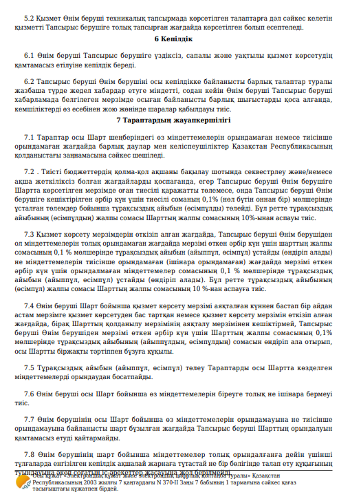 Қызмет көрсету туралы шарт №95