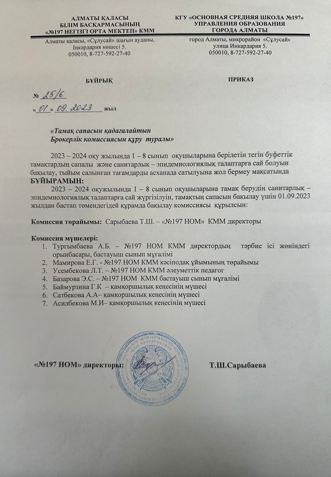 Тегін тамақтандыру ұйымдастыру үшін комиссия құрамын құру