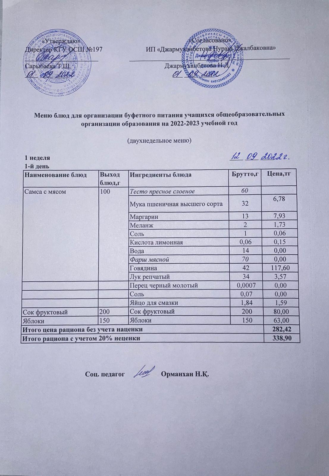 12 сентябрь 2022 0 1 2 3 4 5 Бастауыш сынып оқушыларына және азқамтылған отбасылардың шыққан оқушыларға арналған тегін буфеттік ас мәзірі