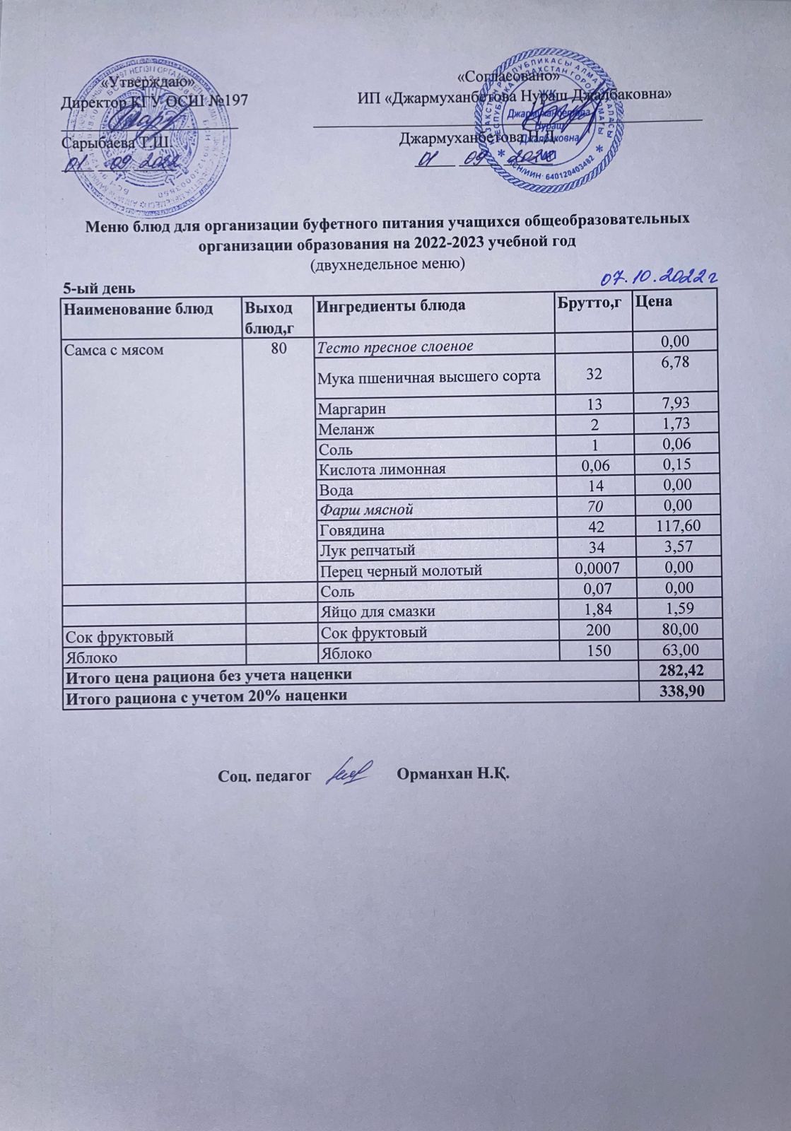 07 октябрь 2022 0 1 2 3 4 5 Бастауыш сынып оқушыларына және аз қамтылған отбасылардың шыққан оқушыларға арналған тегін буфеттік ас мәзірі