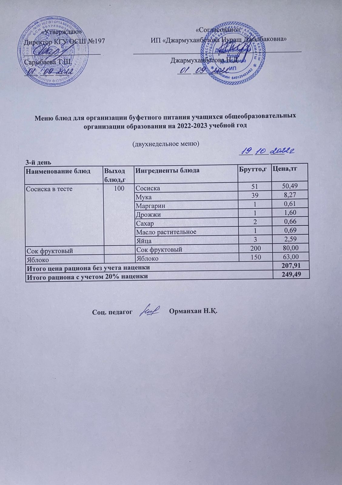 19 октябрь 2022 0 1 2 3 4 5 Бастауыш сынып оқушыларына және аз қамтылған отбасылардың шыққан оқушыларға арналған тегін буфеттік ас мәзірі