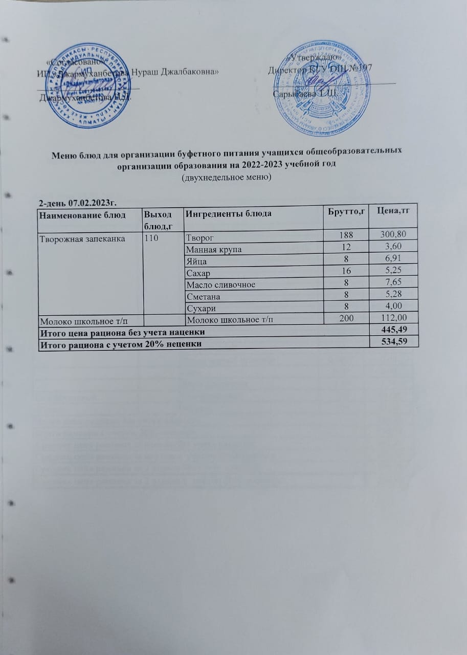 07 февраль 2023 0 1 2 3 4 5 Бастауыш сынып оқушыларына және аз қамтылған отбасылардан шыққан оқушыларға арналған тегін буфеттік ас мәзірі/07.02.2023ж.