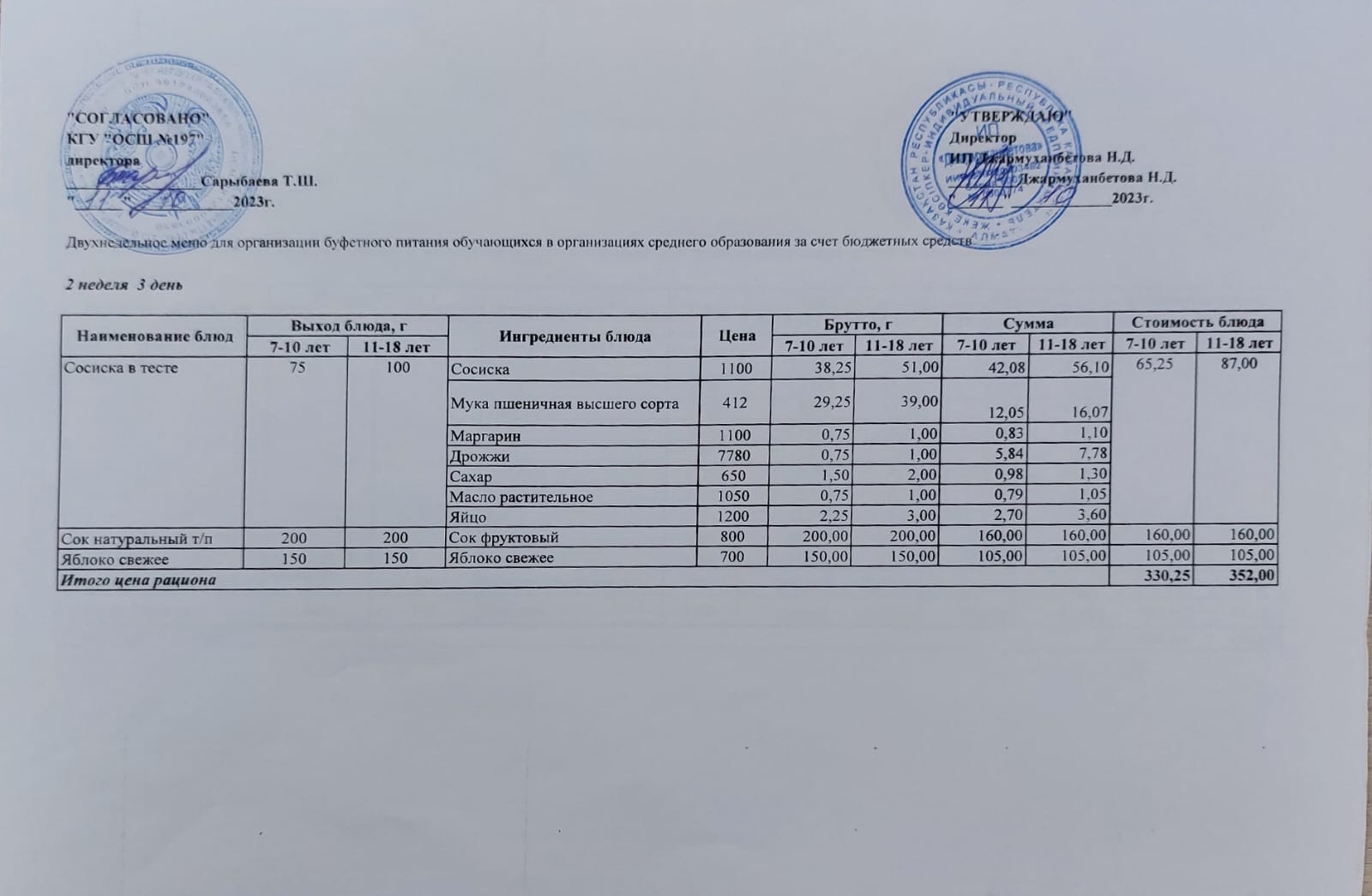 Ас мәзірі 2 апта 4 – ші күн/ 12.10.2023ж.