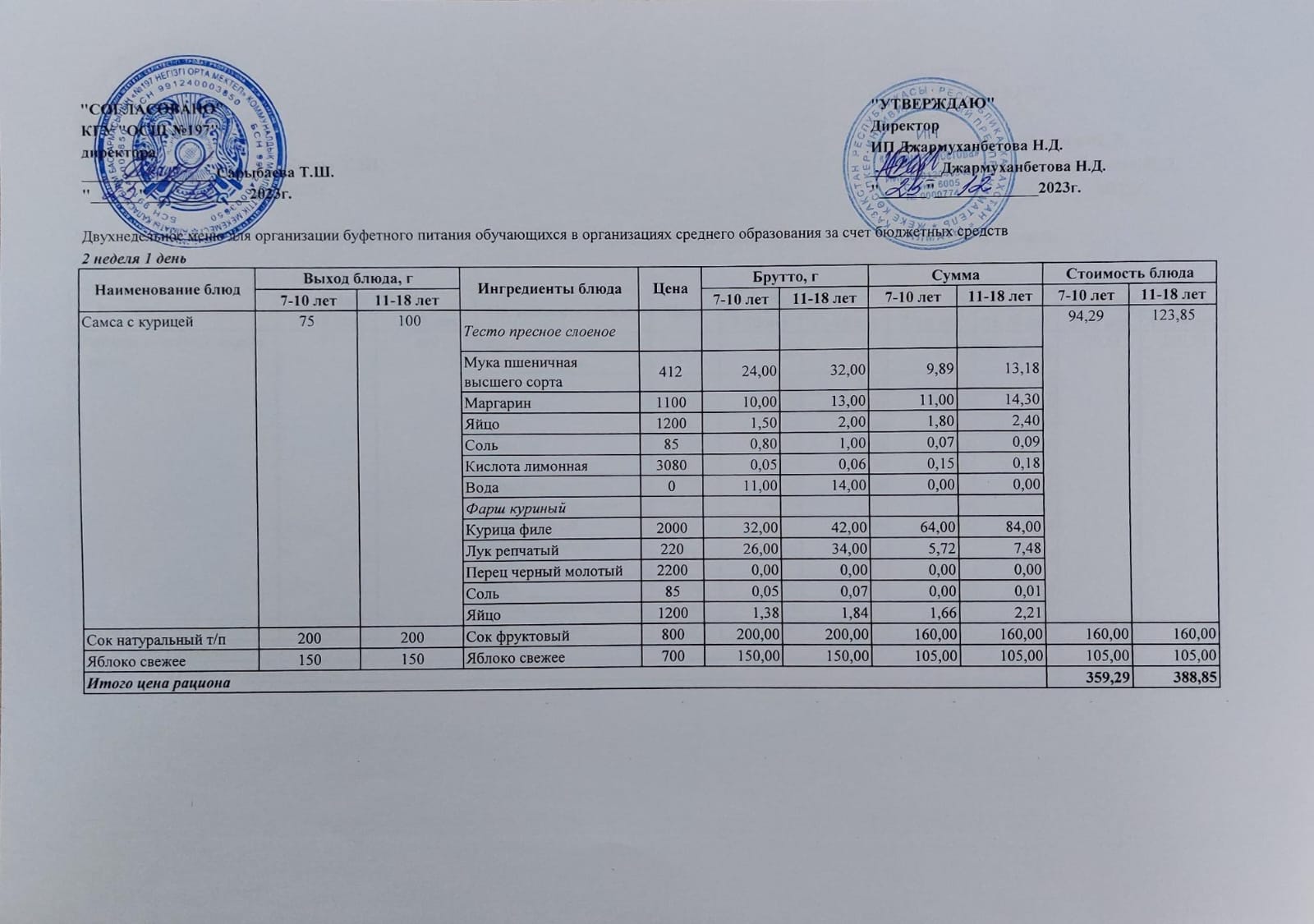 Ас мәзірі 2 апта 4 – ші күн/ 28.12.2023ж.
