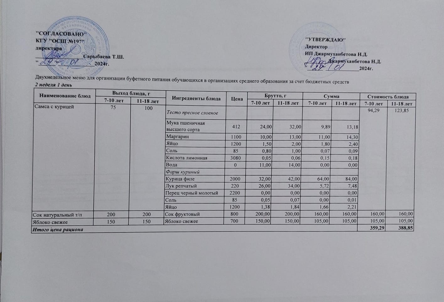 Ас мәзірі 2 апта 1 – ші күн/ 11.03.2024жыл