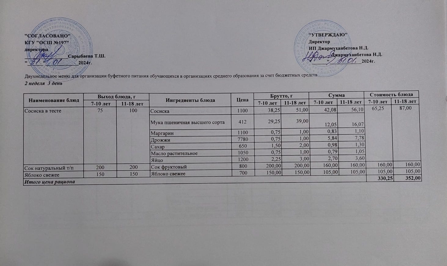 Ас мәзірі 2 апта 3 – ші күн/ 31.01.2024жыл