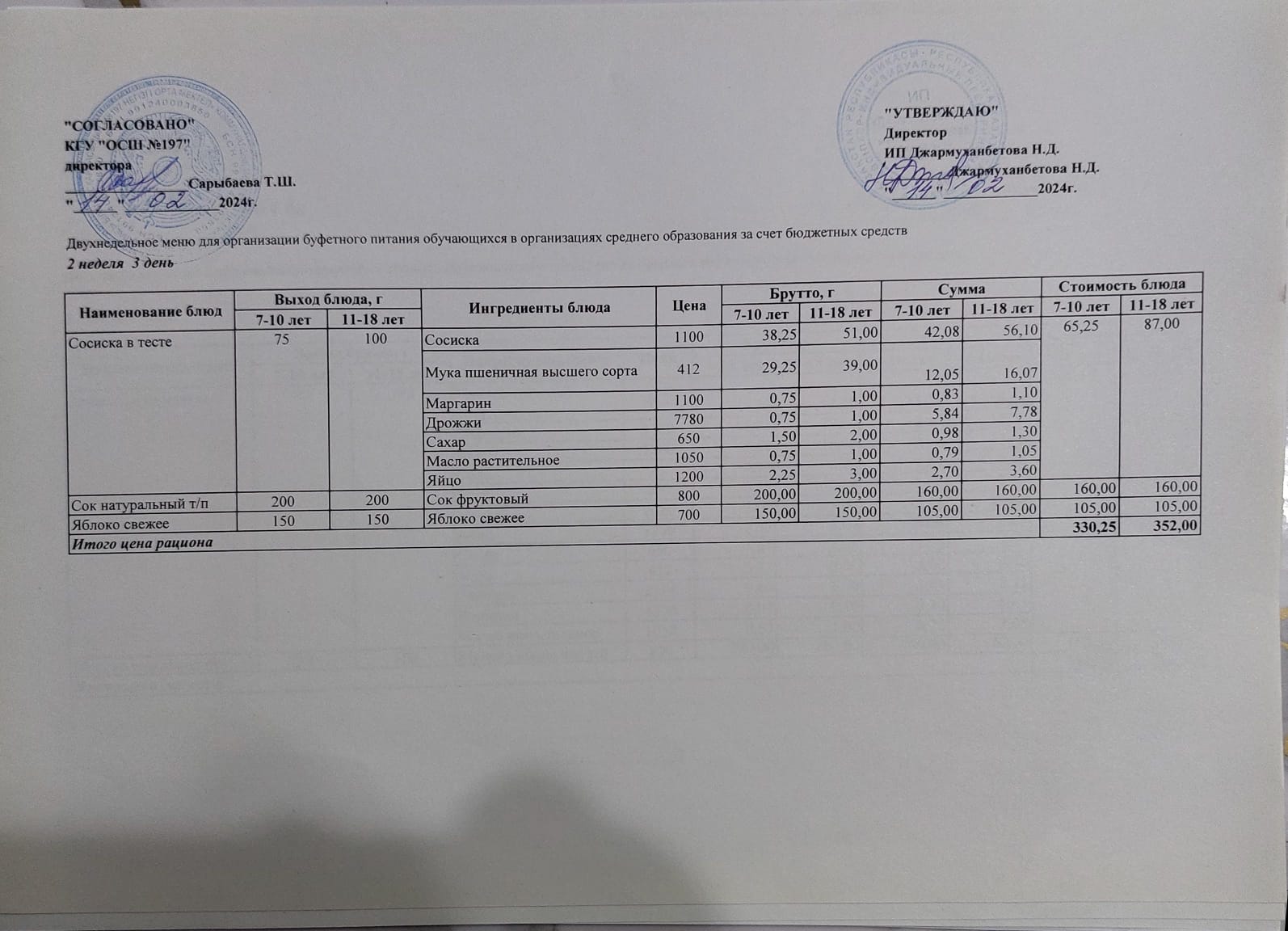 » Ас мәзірі 2 апта 3 – ші күн/ 14.02.2024жыл