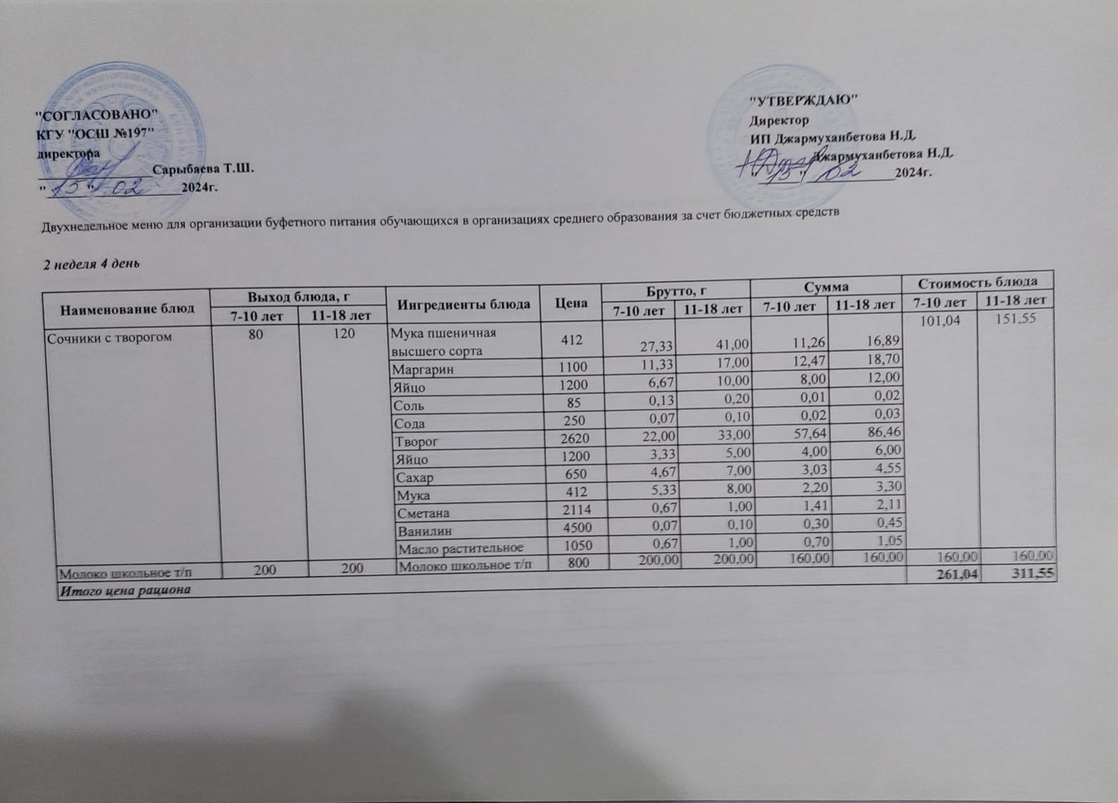 » Ас мәзірі 2 апта 4 – ші күн/ 15.02.2024жыл