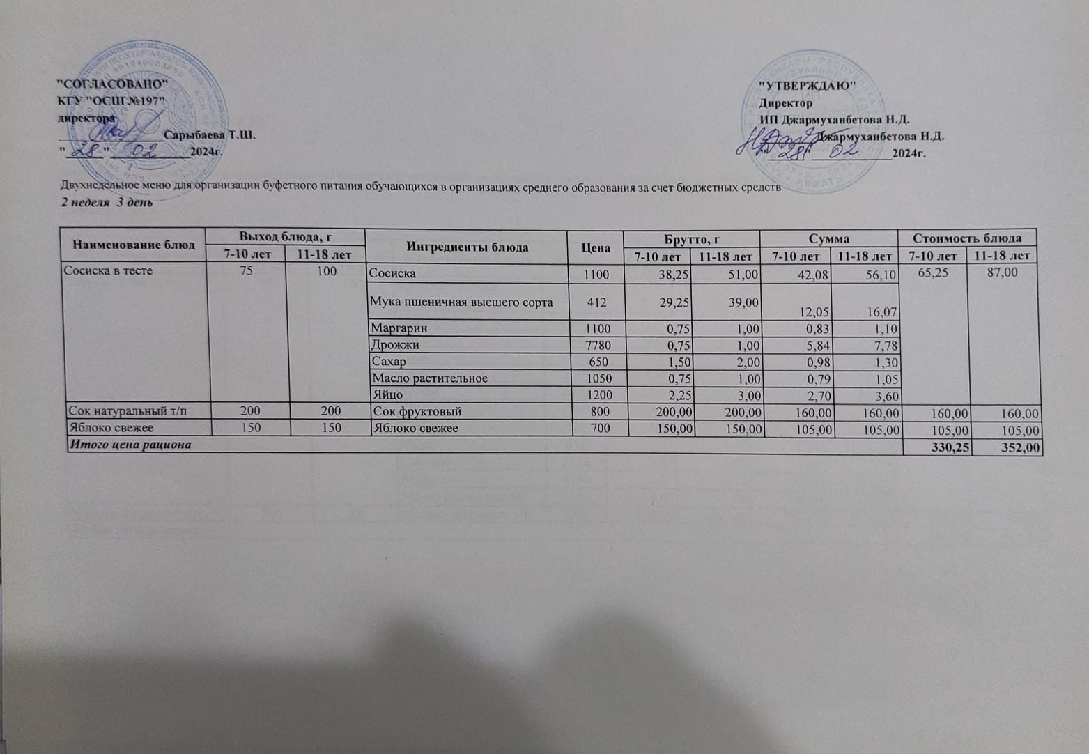 Ас мәзірі 2 апта 1 – ші күн/ 11.03.2024жыл