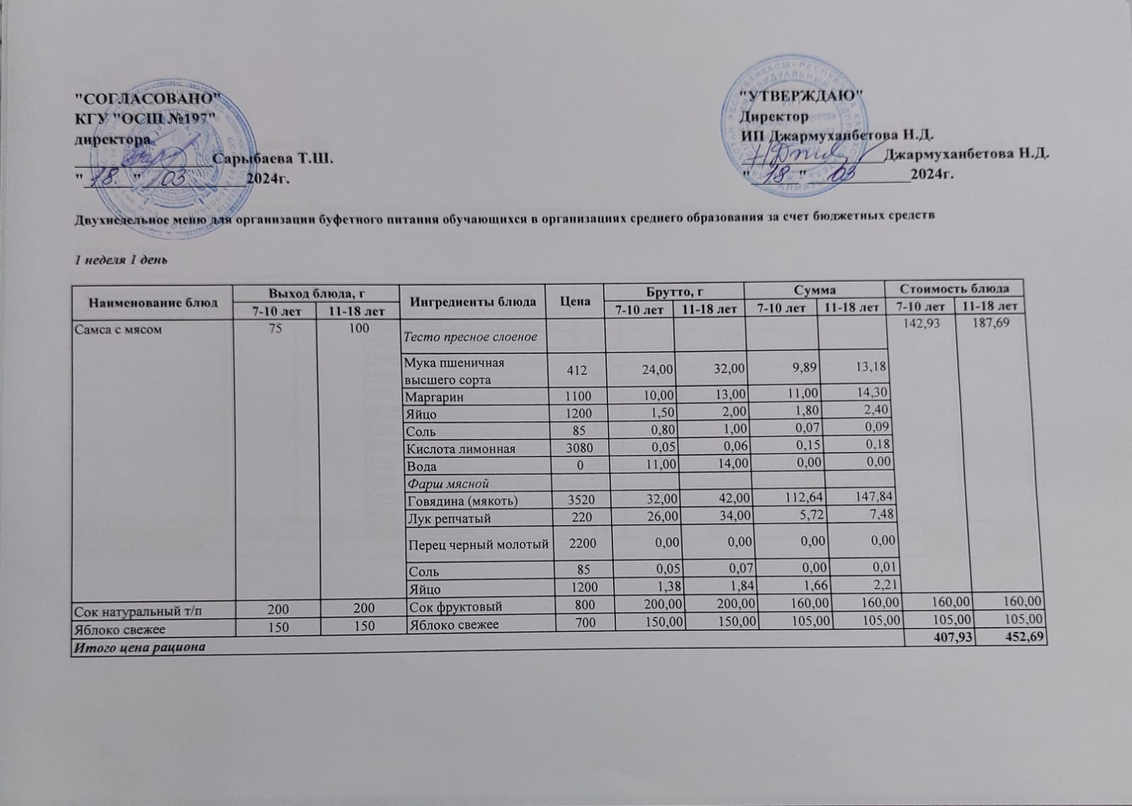 Ас мәзірі 2 апта 1 – ші күн/ 11.03.2024жыл