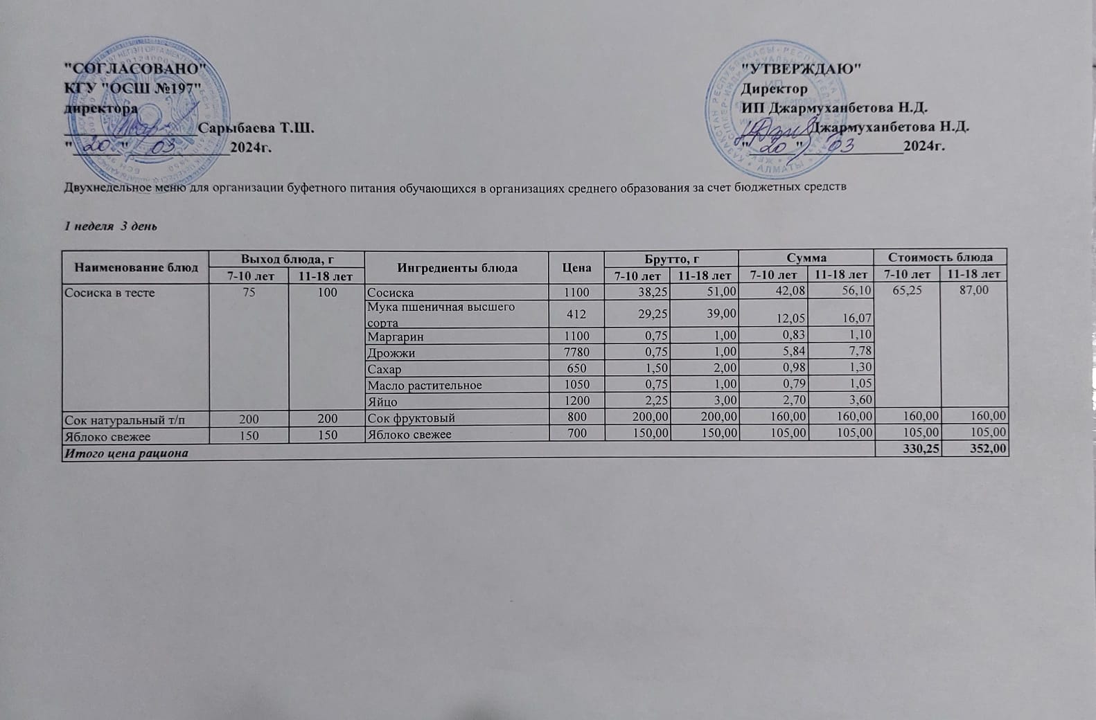 Ас мәзірі 1 апта 3 – ші күн/ 20.03.2024жыл.