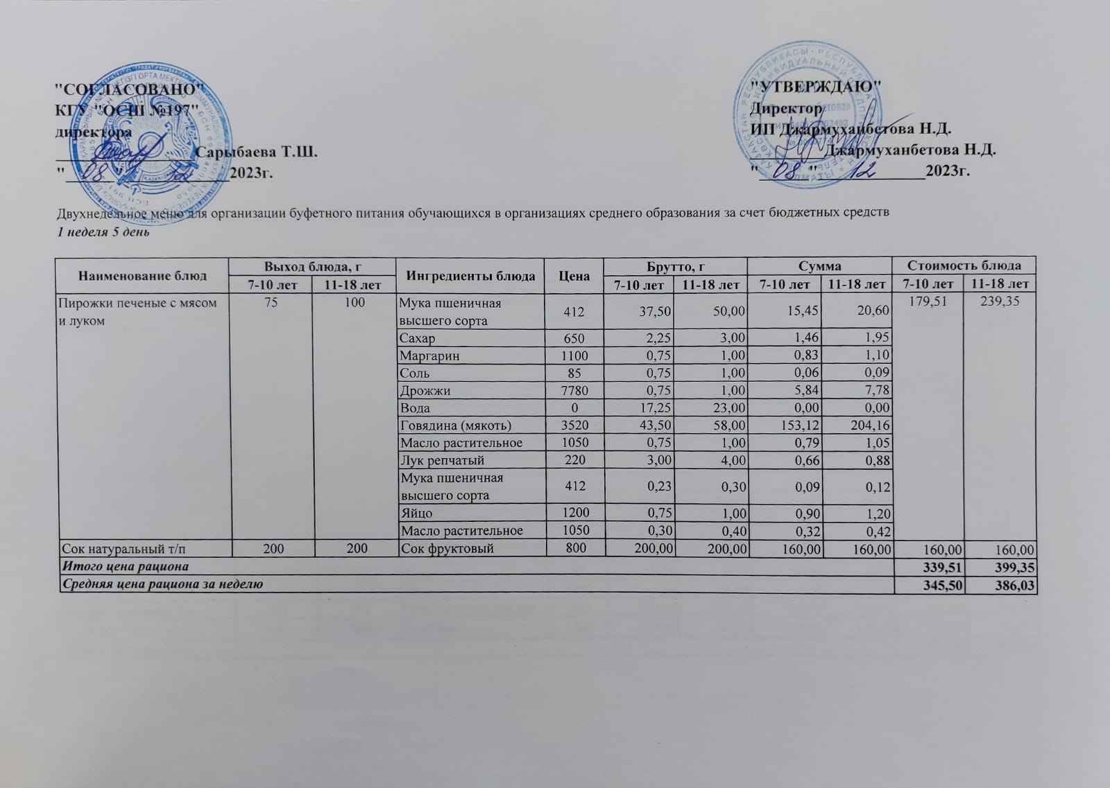 Ас мәзірі 1 апта 5 - ші күн / 22.12.2023жыл.