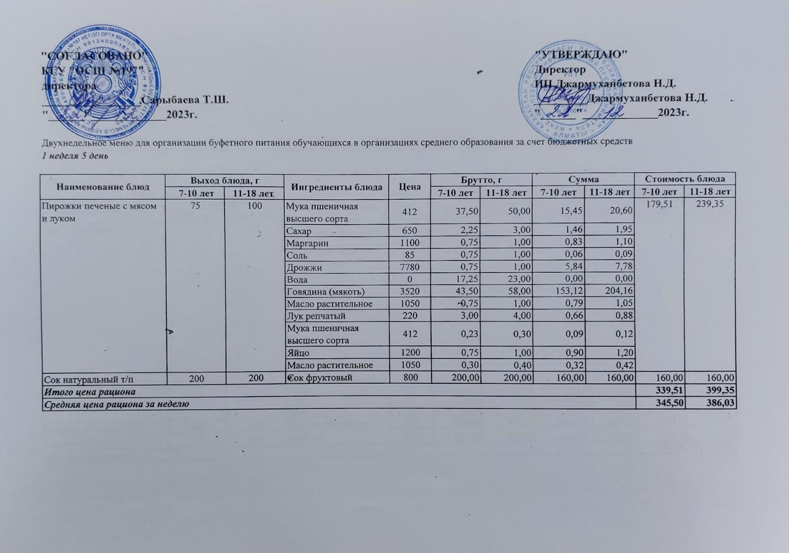 Ас мәзірі 1 апта 5 - ші күн / 22.12.2023жыл.