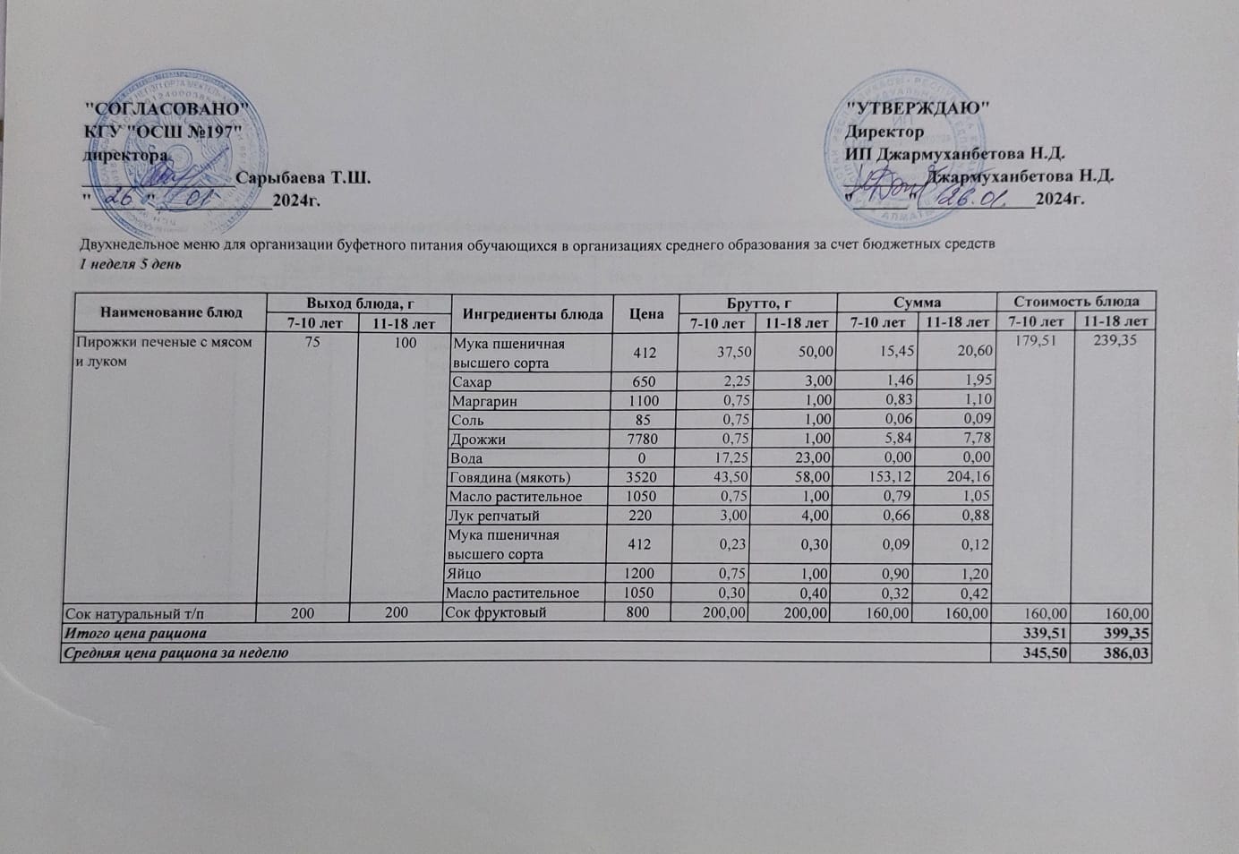 » Ас мәзірі 1 апта 5 - ші күн / 26.01.2024жыл.