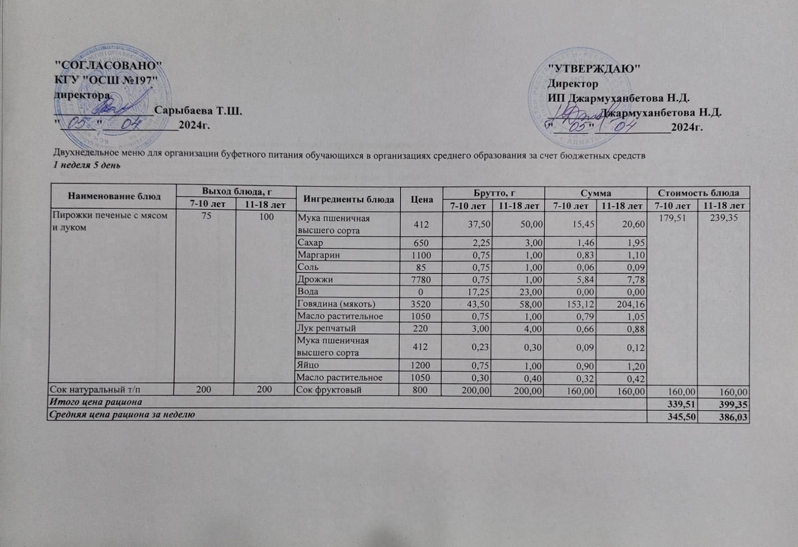 » Ас мәзірі 1 апта 5 - ші күн / 05.04.2024жыл.