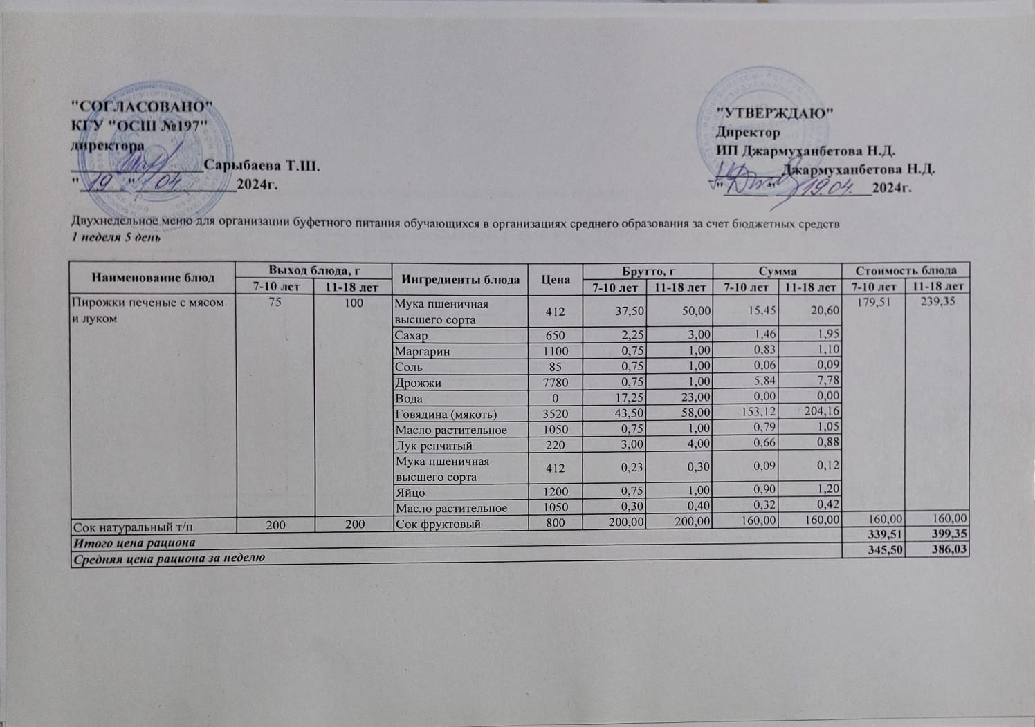 » Ас мәзірі 1 апта 5 - ші күн /19.04.2024жыл.