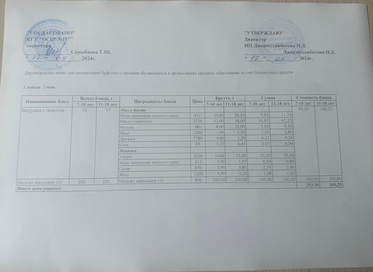 17 сентябрь 2024 0 1 2 3 4 5 Күнделікті тегін буфеттік тамақтандыру ас мәзірі 1апта 2 -ші күн / 17.09.2024жыл.