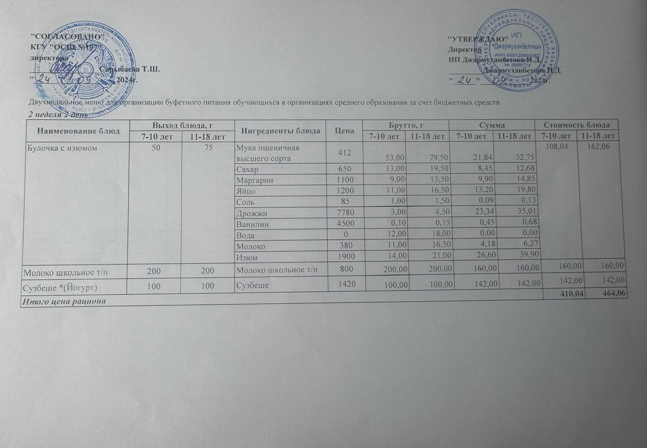 24 сентябрь 2024 0 1 2 3 4 5 Күнделікті тегін буфеттік тамақтандыру ас мәзірі 2 апта 2 - ші күн / 24.09.2024жыл.