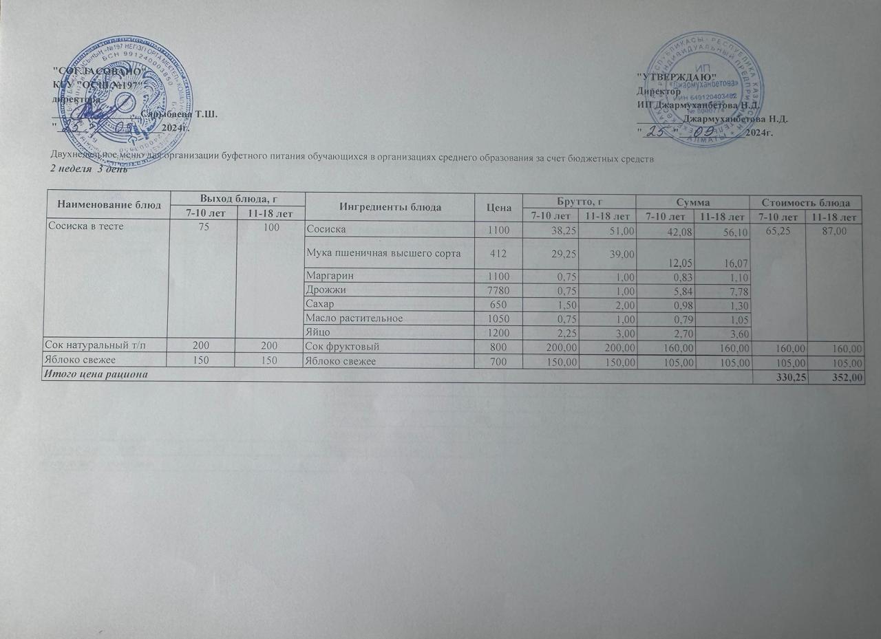 25 сентябрь 2024 0 1 2 3 4 5 Күнделікті тегін буфеттік тамақтандыру ас мәзірі 2 апта 3 - ші күн / 25.09.2024жыл.