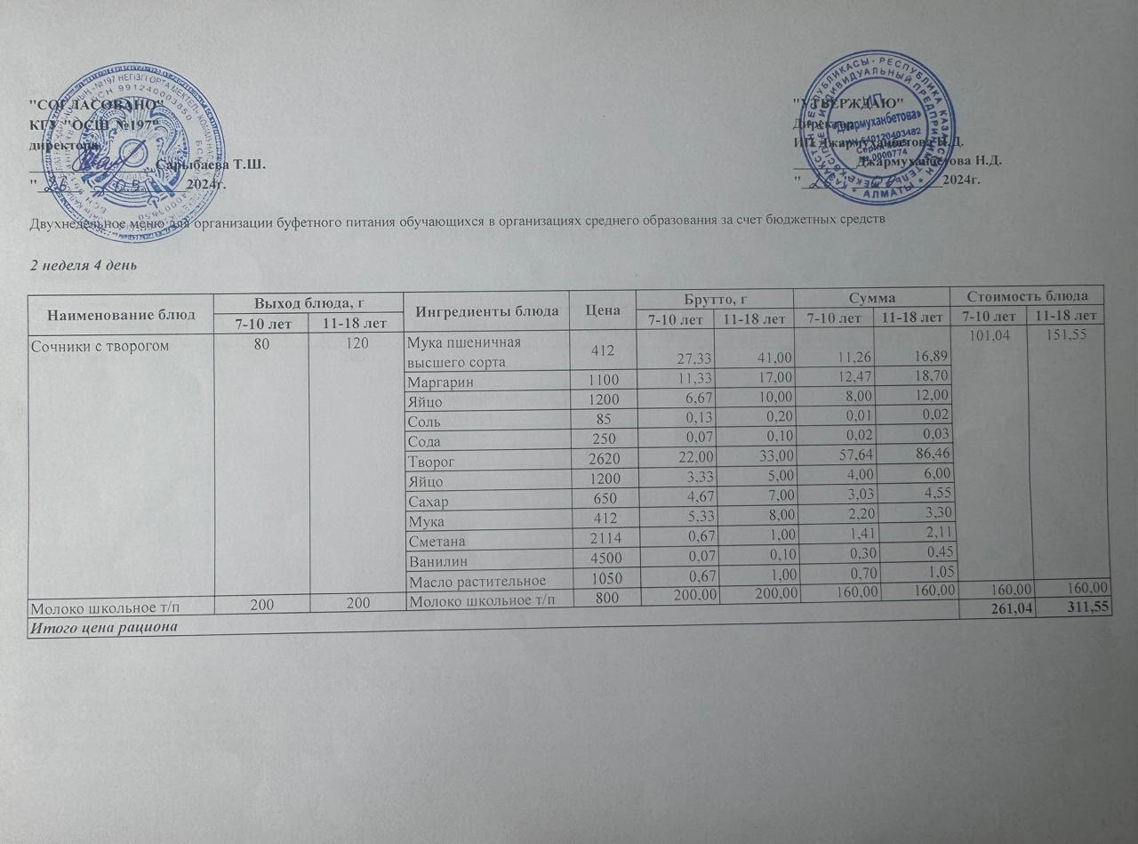 26 сентябрь 2024 0 1 2 3 4 5 Күнделікті тегін буфеттік тамақтандыру ас мәзірі 2 апта 4 - ші күн / 26.09.2024жыл.