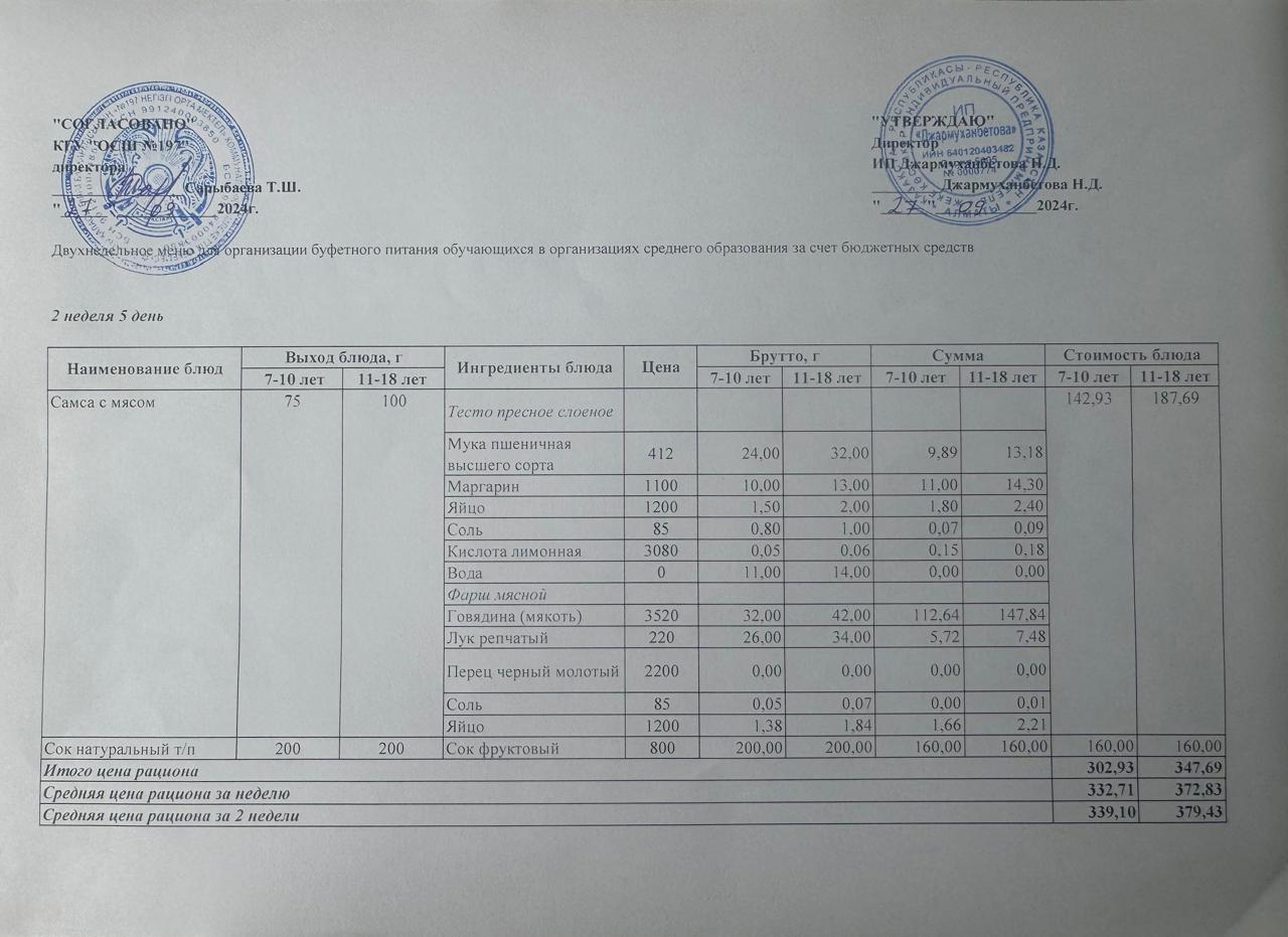 27 сентябрь 2024 0 1 2 3 4 5 Күнделікті тегін буфеттік тамақтандыру ас мәзірі 2 апта 5 - ші күн / 27.09.2024жыл.