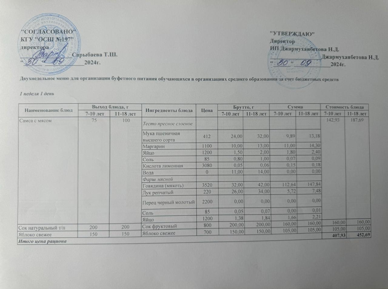 30 сентябрь 2024 0 1 2 3 4 5 Күнделікті тегін буфеттік тамақтандыру ас мәзірі 1 апта 1 - ші күн / 30.09.2024жыл.