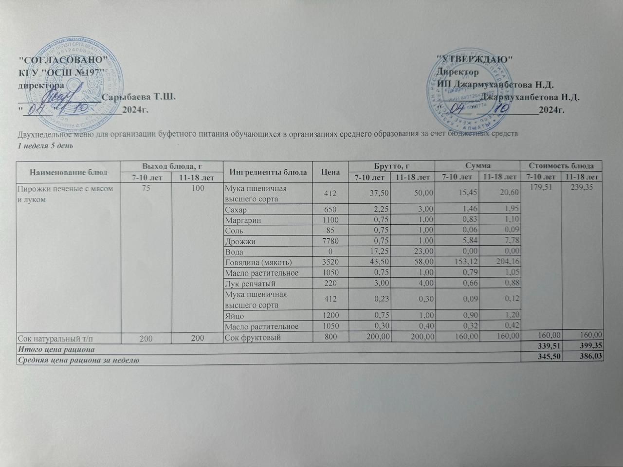 04 октябрь 2024 0 1 2 3 4 5 Күнделікті тегін буфеттік тамақтандыру ас мәзірі 1апта 4-ші күн / 04.10.2024жыл.