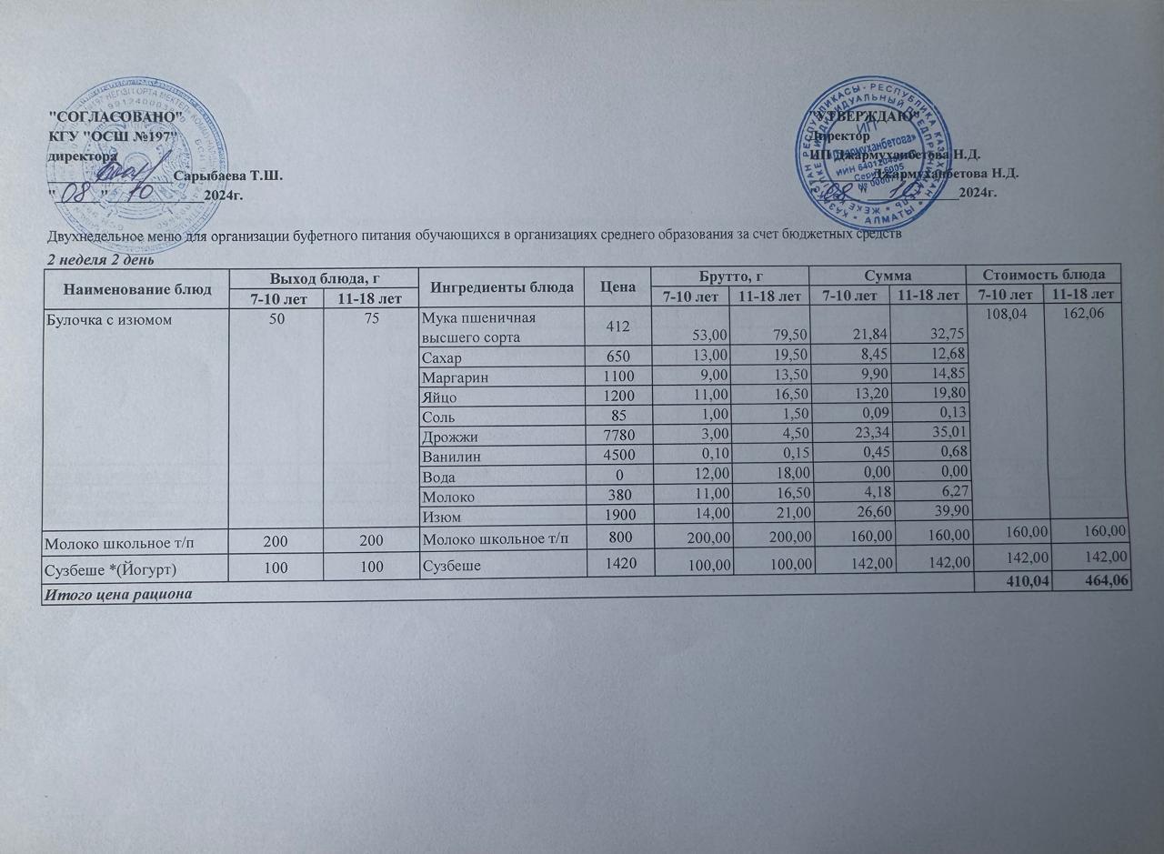 08 октябрь 2024 0 1 2 3 4 5 Күнделікті тегін буфеттік тамақтандыру ас мәзірі 2апта 2-ші күн / 08.10.2024жыл.