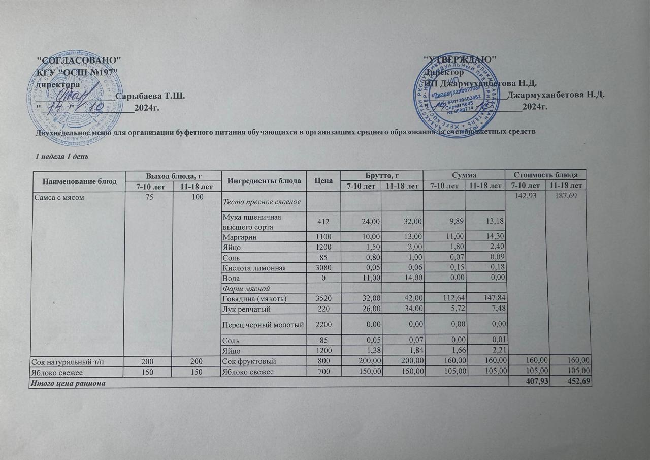 14 октябрь 2024 0 1 2 3 4 5 Күнделікті тегін буфеттік тамақтандыру ас мәзірі 1апта 1-ші күн / 14.10.2024жыл.