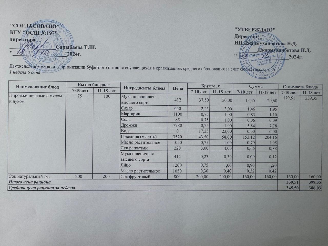 18 октябрь 2024 0 1 2 3 4 5 Күнделікті тегін буфеттік тамақтандыру ас мәзірі 1апта 5-ші күн / 18.10.2024жыл.