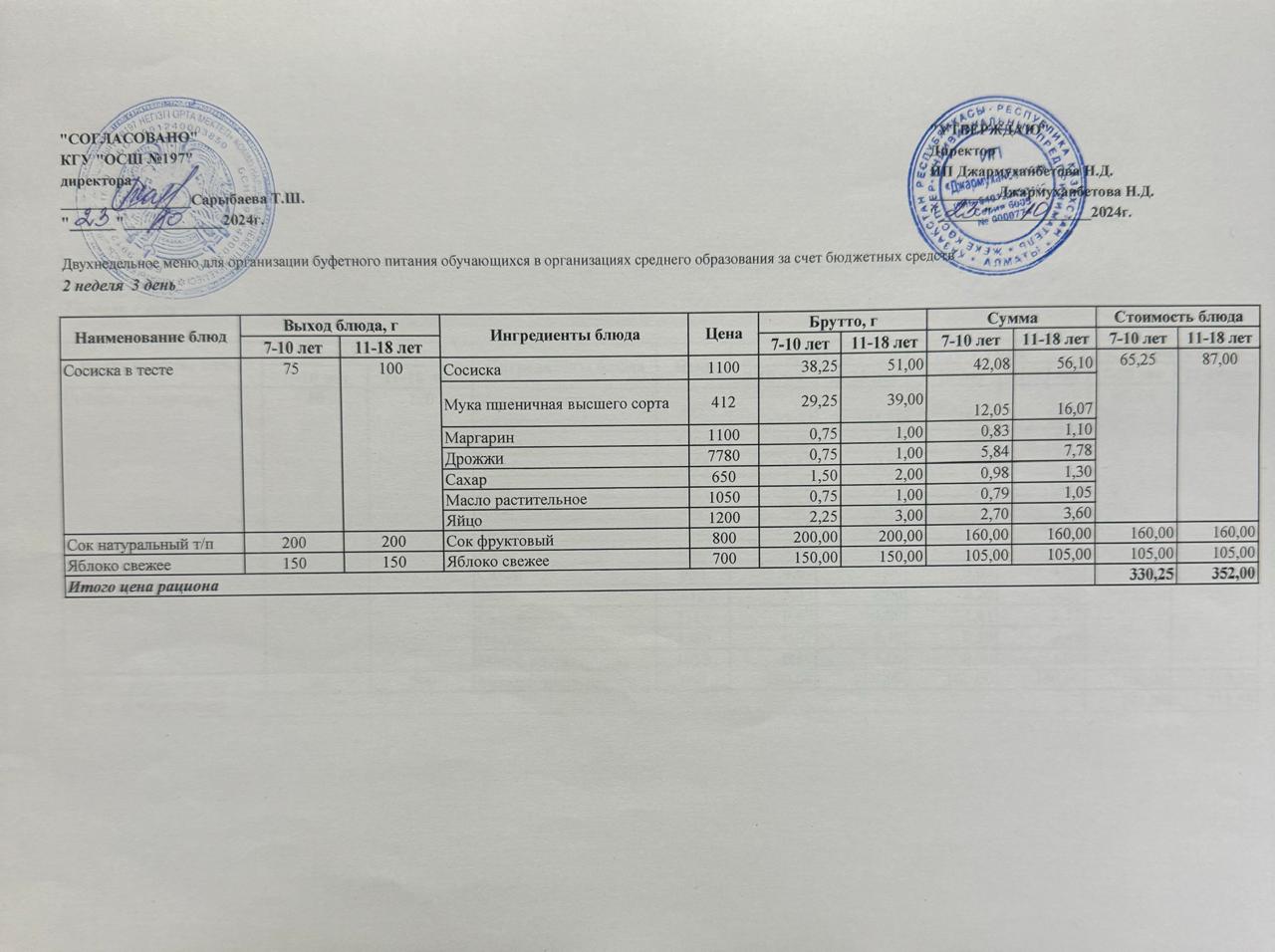23 октябрь 2024 0 1 2 3 4 5 Күнделікті тегін буфеттік тамақтандыру ас мәзірі 2 апта 3-ші күн / 23.10.2024жыл.