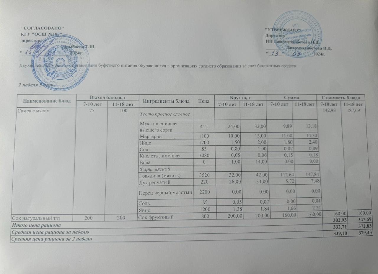 13 сентябрь 2024 0 1 2 3 4 5 Күнделікті тегін буфеттік тамақтандыру ас мәзірі 2 апта 5-ші күн / 13.09.2024жыл.