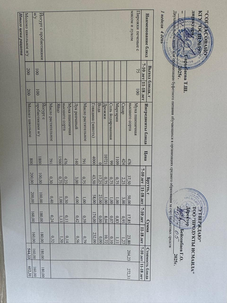 » Күнделікті тегін буфеттік тамақтандыру ас мәзірі 05.2025