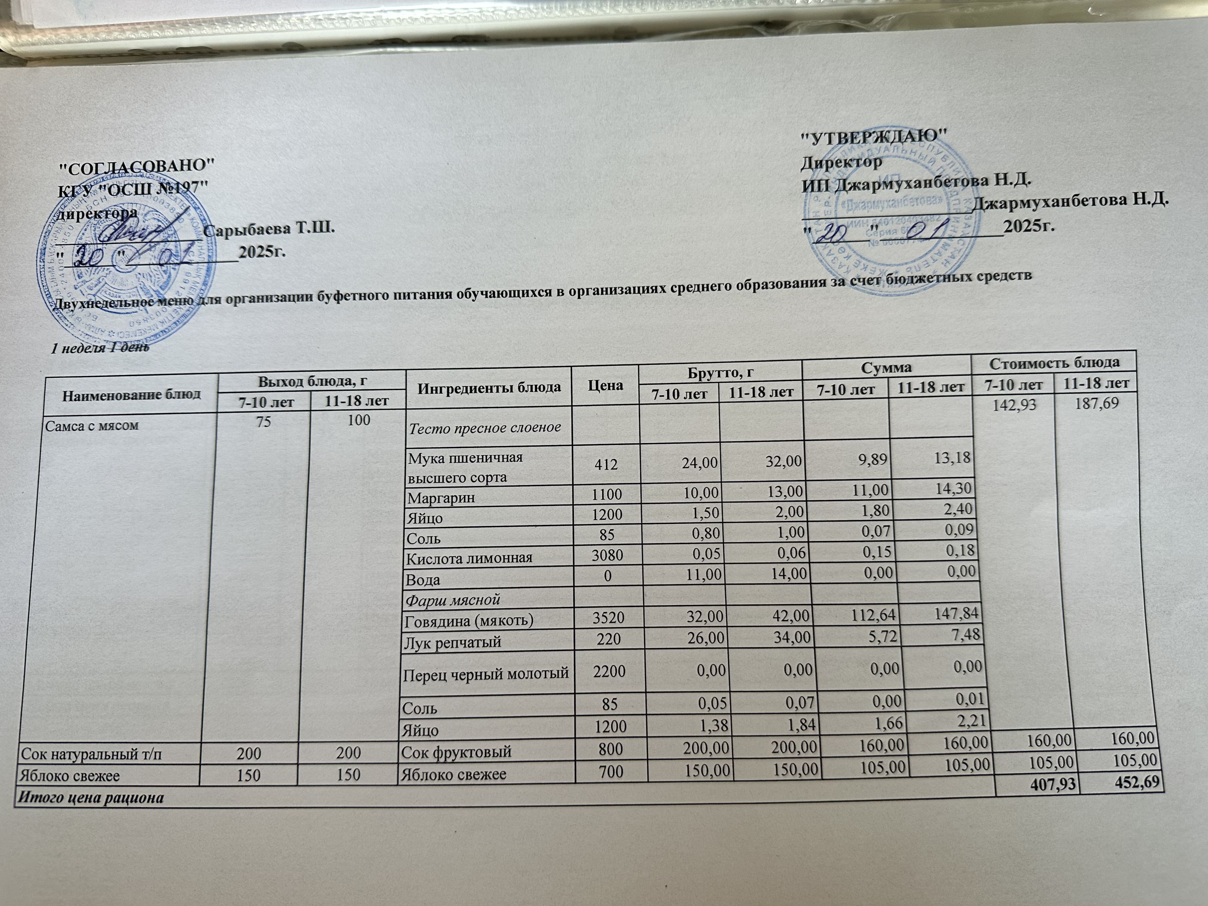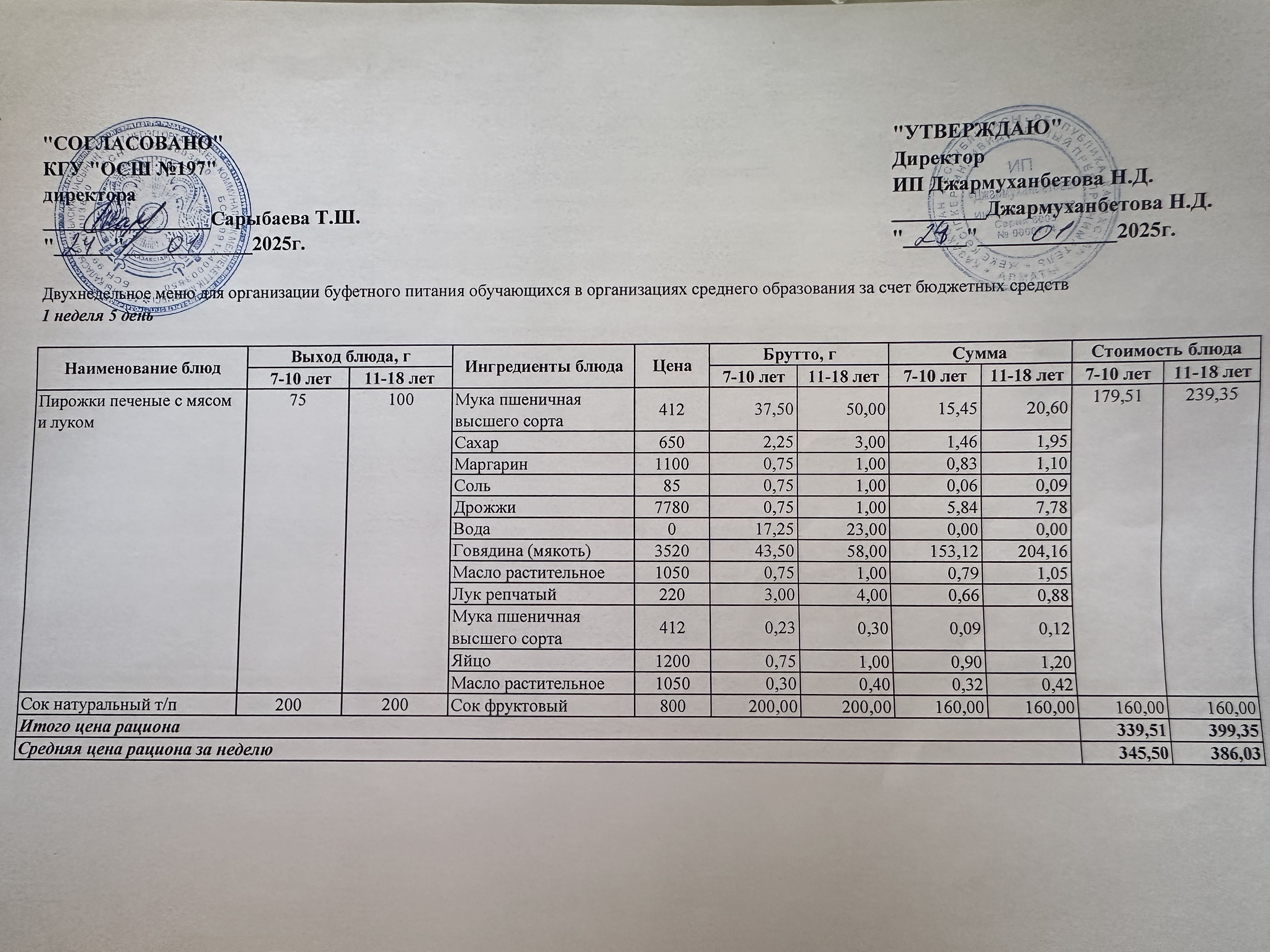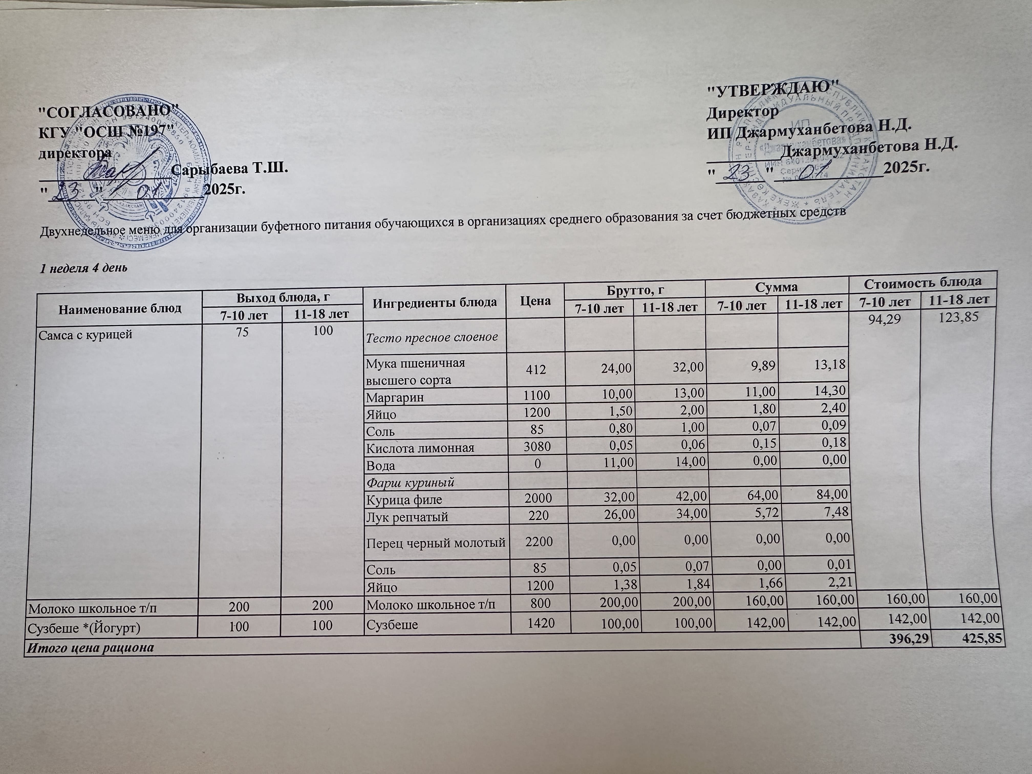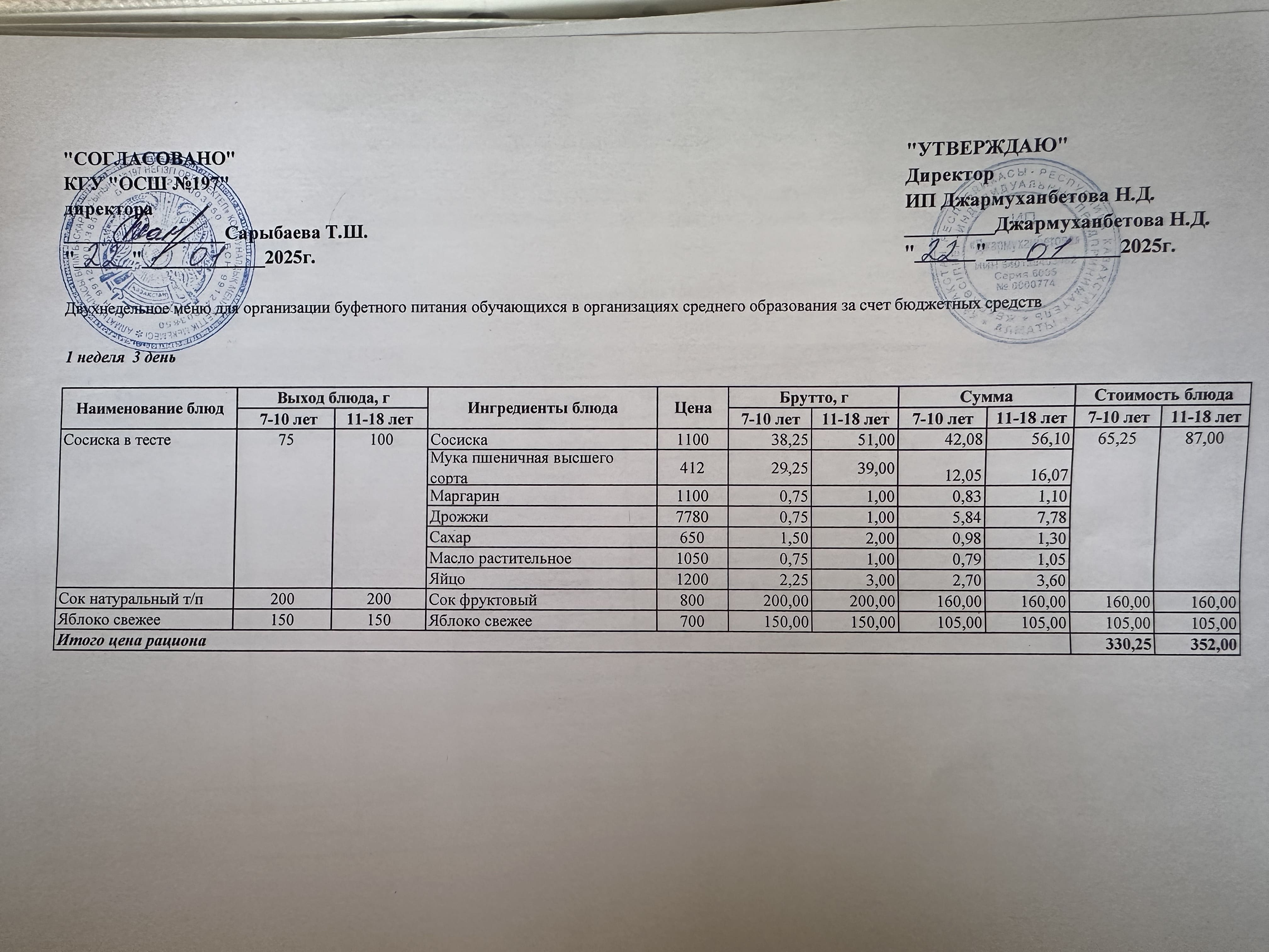 » Күнделікті тегін буфеттік тамақтандыру ас мәзірі 01.2025