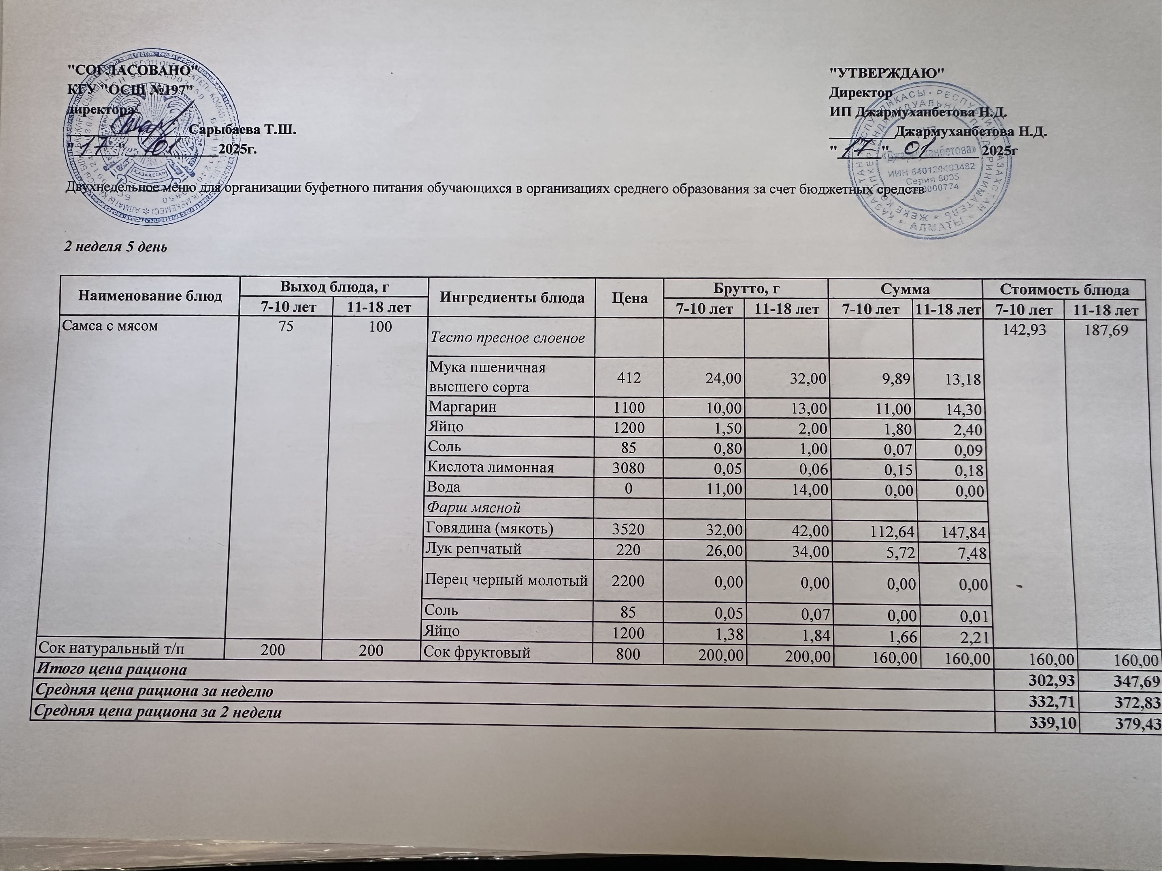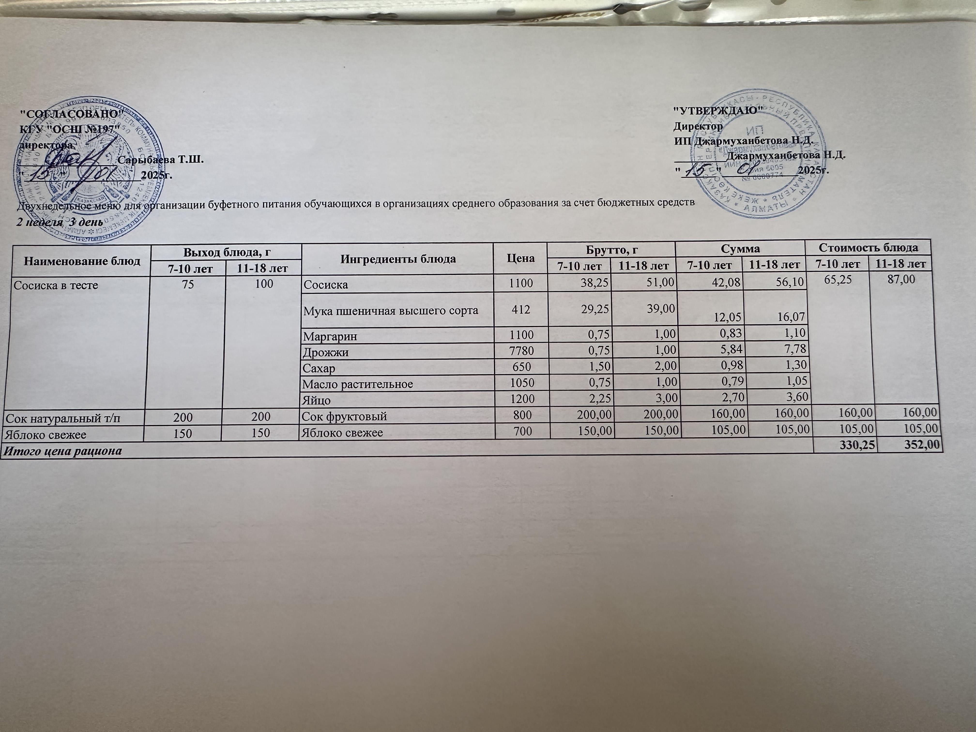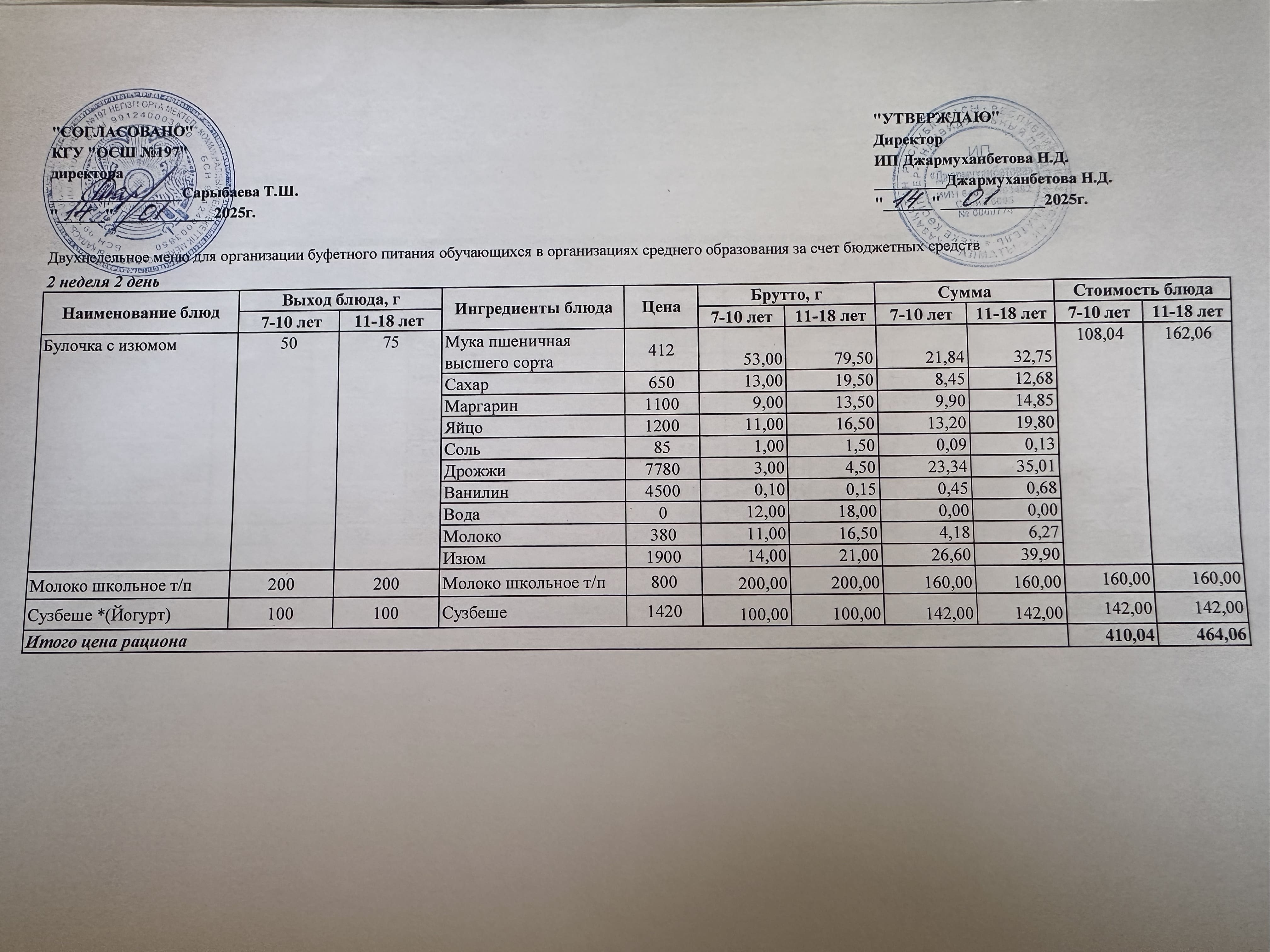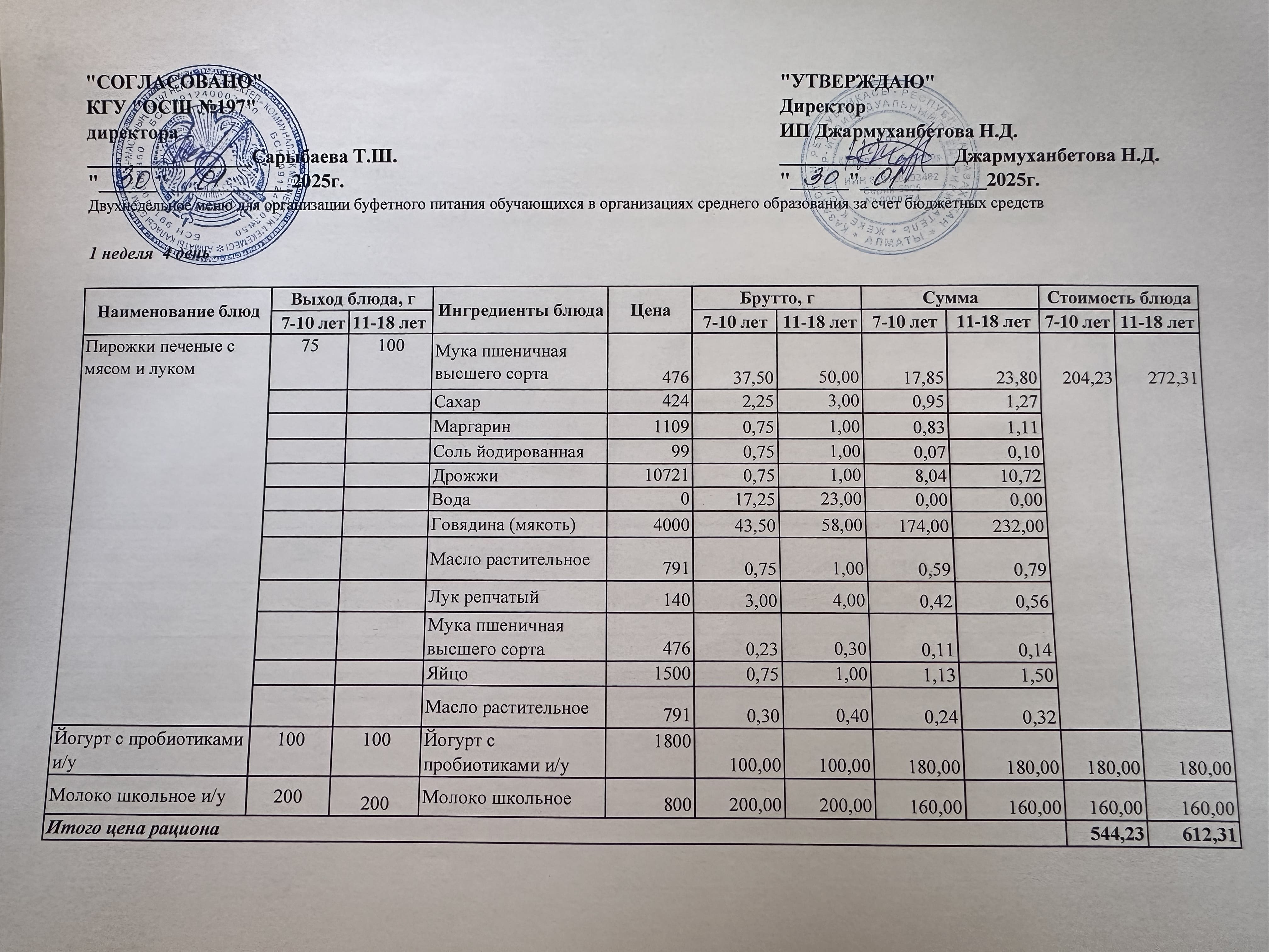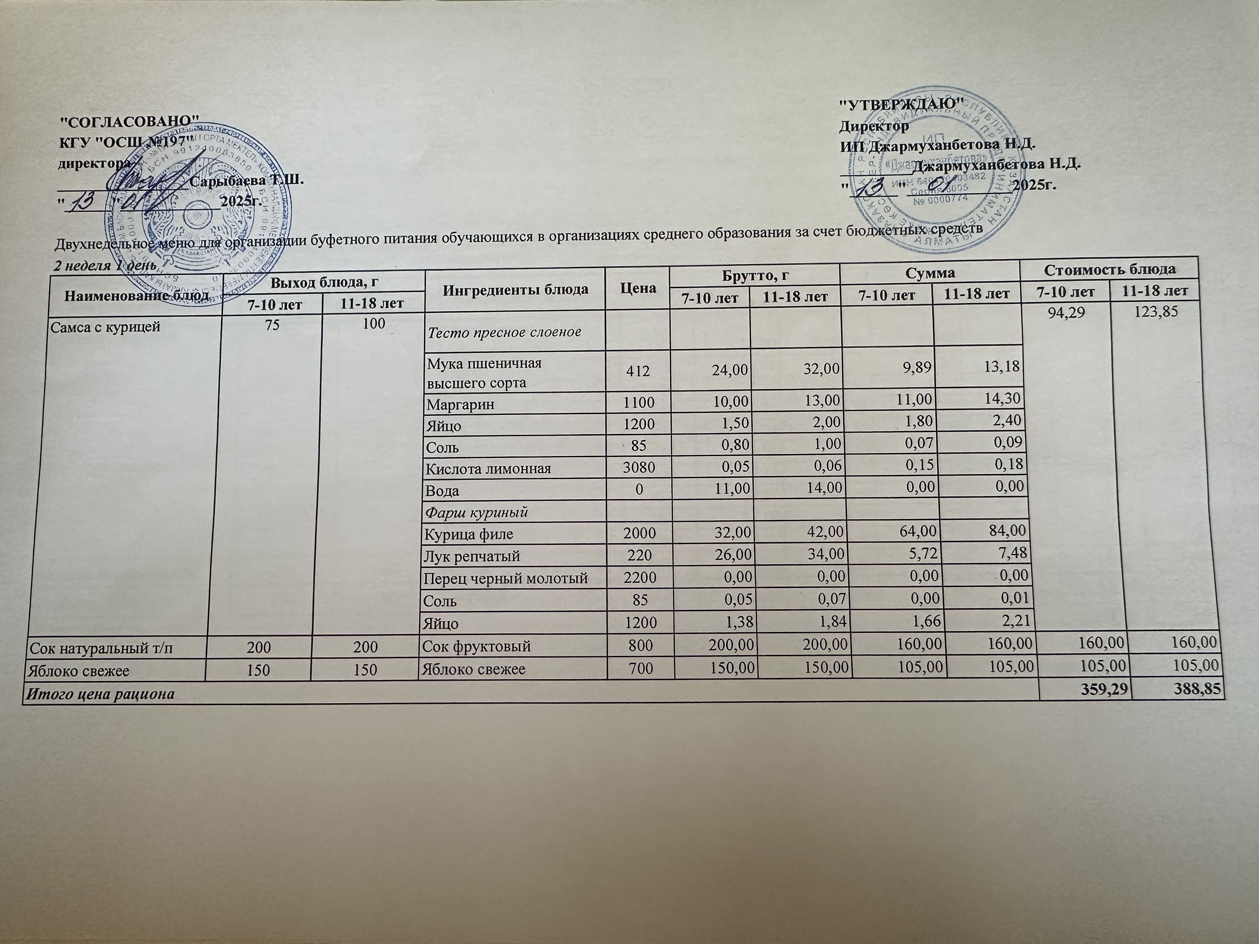 » Күнделікті тегін буфеттік тамақтандыру ас мәзірі 01.2025