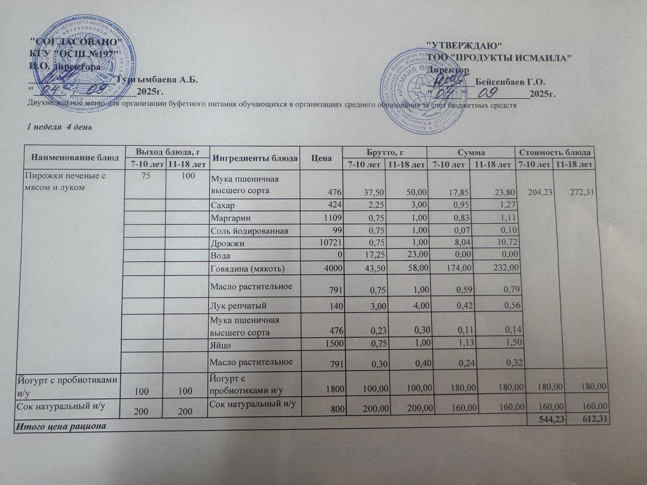 » Күнделікті тегін буфеттік тамақтандыру ас мәзірі 04.09.2025 ж