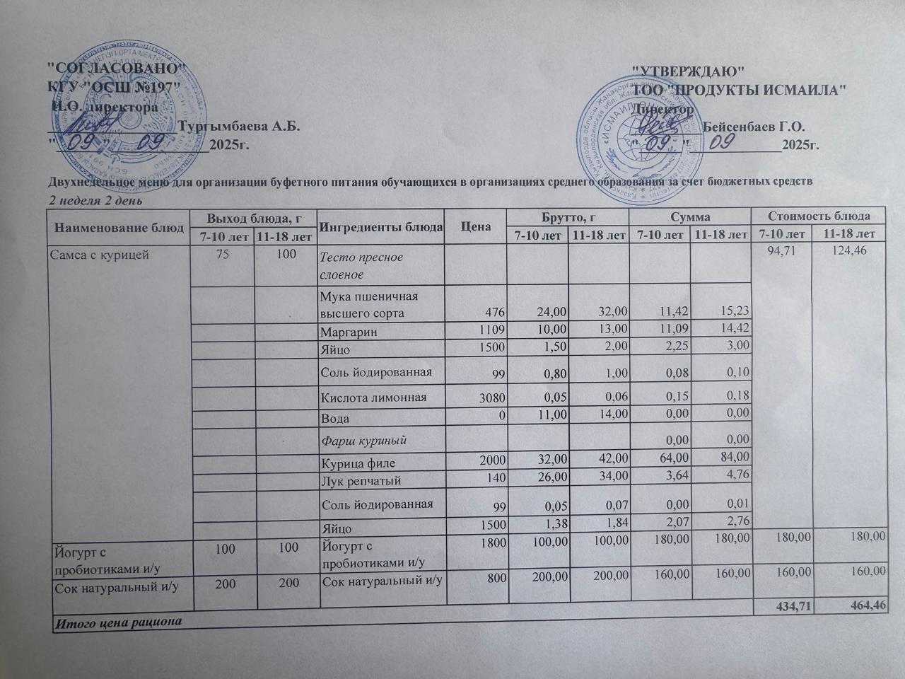 » Күнделікті тегін буфеттік тамақтандыру ас мәзірі 09.09.2025 ж