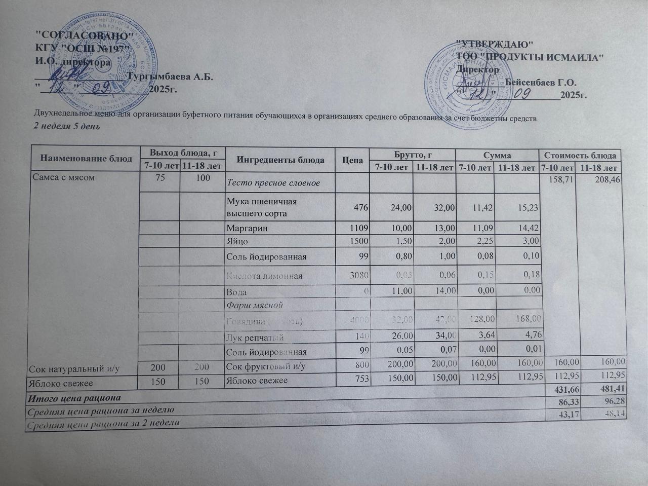 » Күнделікті тегін буфеттік тамақтандыру ас мәзірі 12.09.2025ж