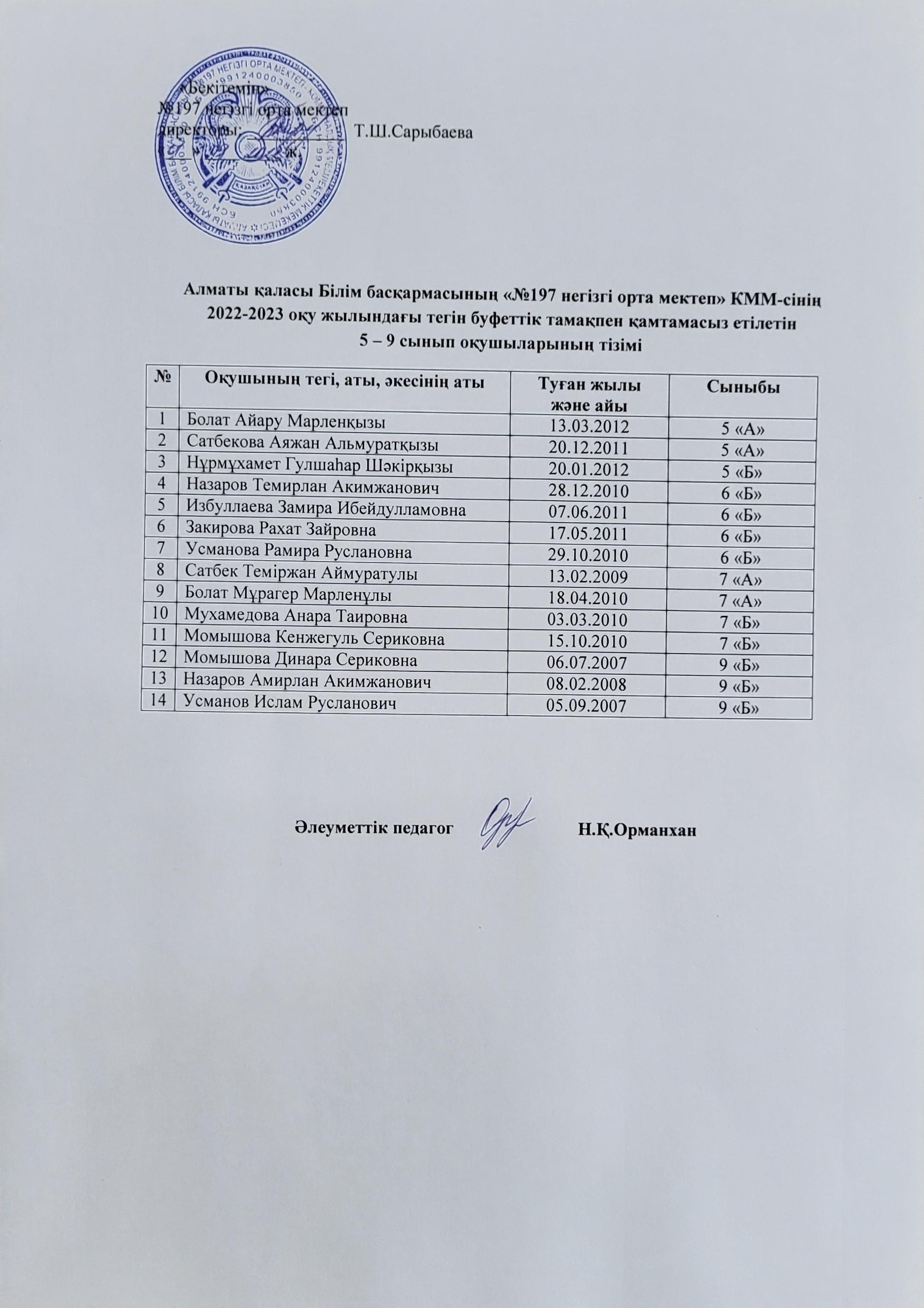 01 сентябрь 2022 0 1 2 3 4 5 1-4 және 5-9 сынып аралығындағы тегін буфеттік тамақпен тамақтанатын оқушылардың тізімі.